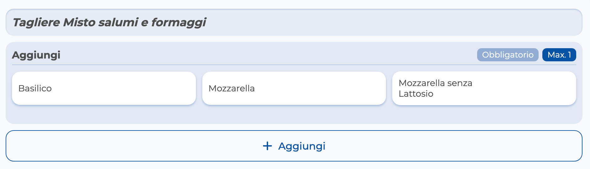 Ad esempio: “Aggiungi basilico”, “Togli mozzarella”