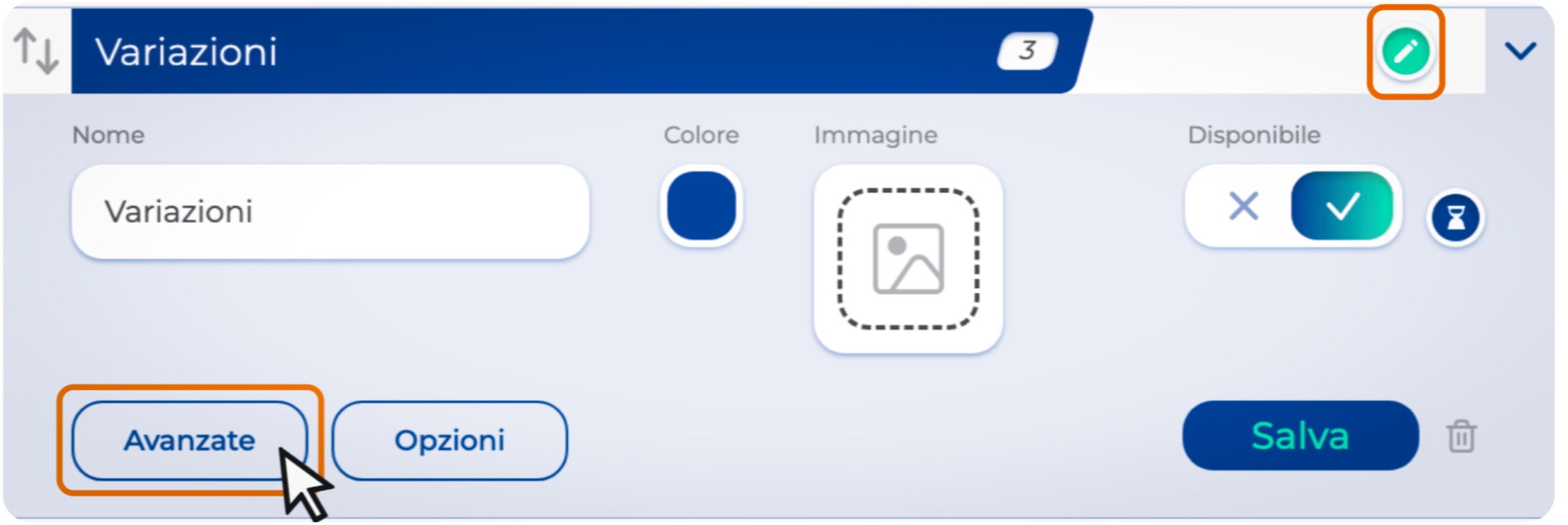 3. Clicca l'icona della Matita della categoria variazioni e seleziona il tasto Avanzate.