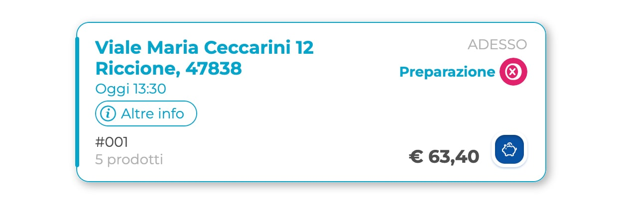 - Ora: indica l'orario in cui è fissata la consegna