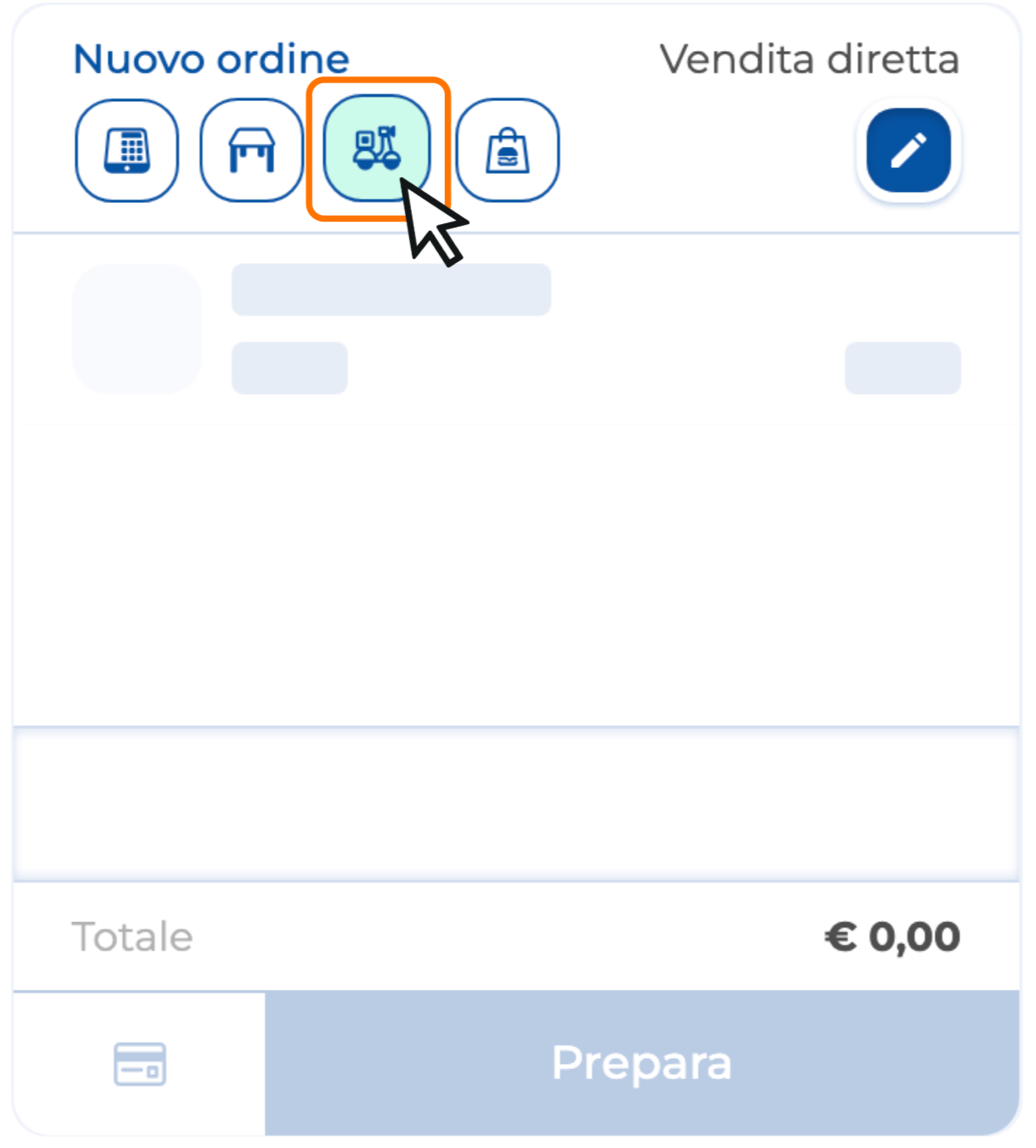 2. Seleziona l'icona del motorino nella scheda Nuovo Ordine.