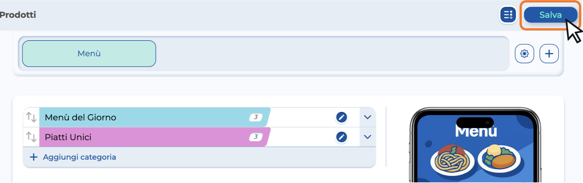 Tutti gli articoli che inserisci qui si aggiornano in automatico nella sezione Vendita, quella che userai per inserire i prodotti all'interno delle comande.