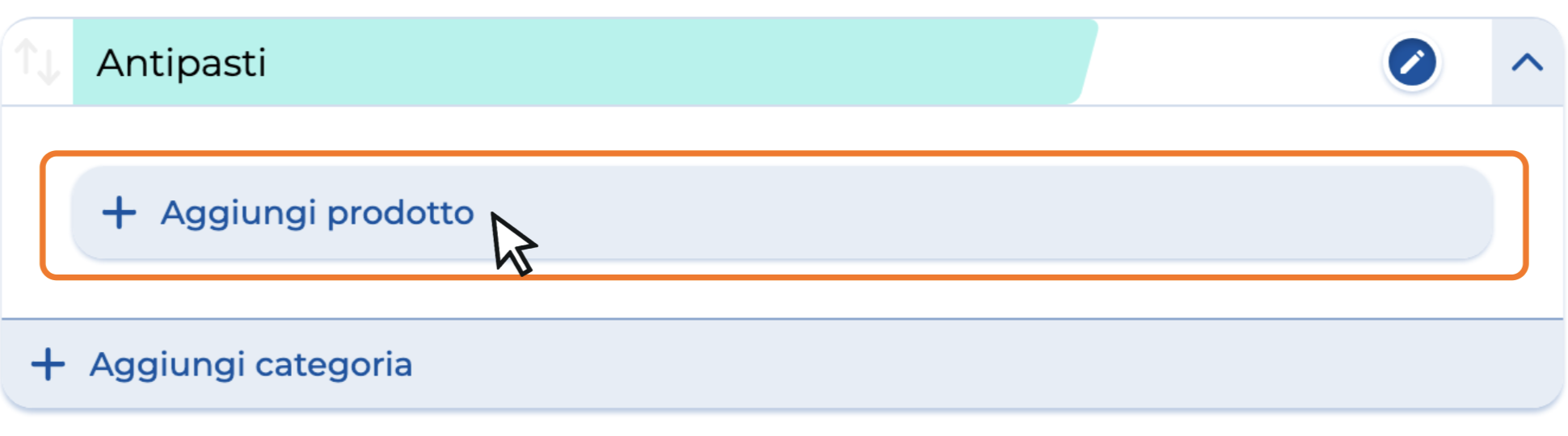 4. Apri la categoria cliccando sulla freccia verso il basso, poi seleziona il bottone Aggiungi prodotto.