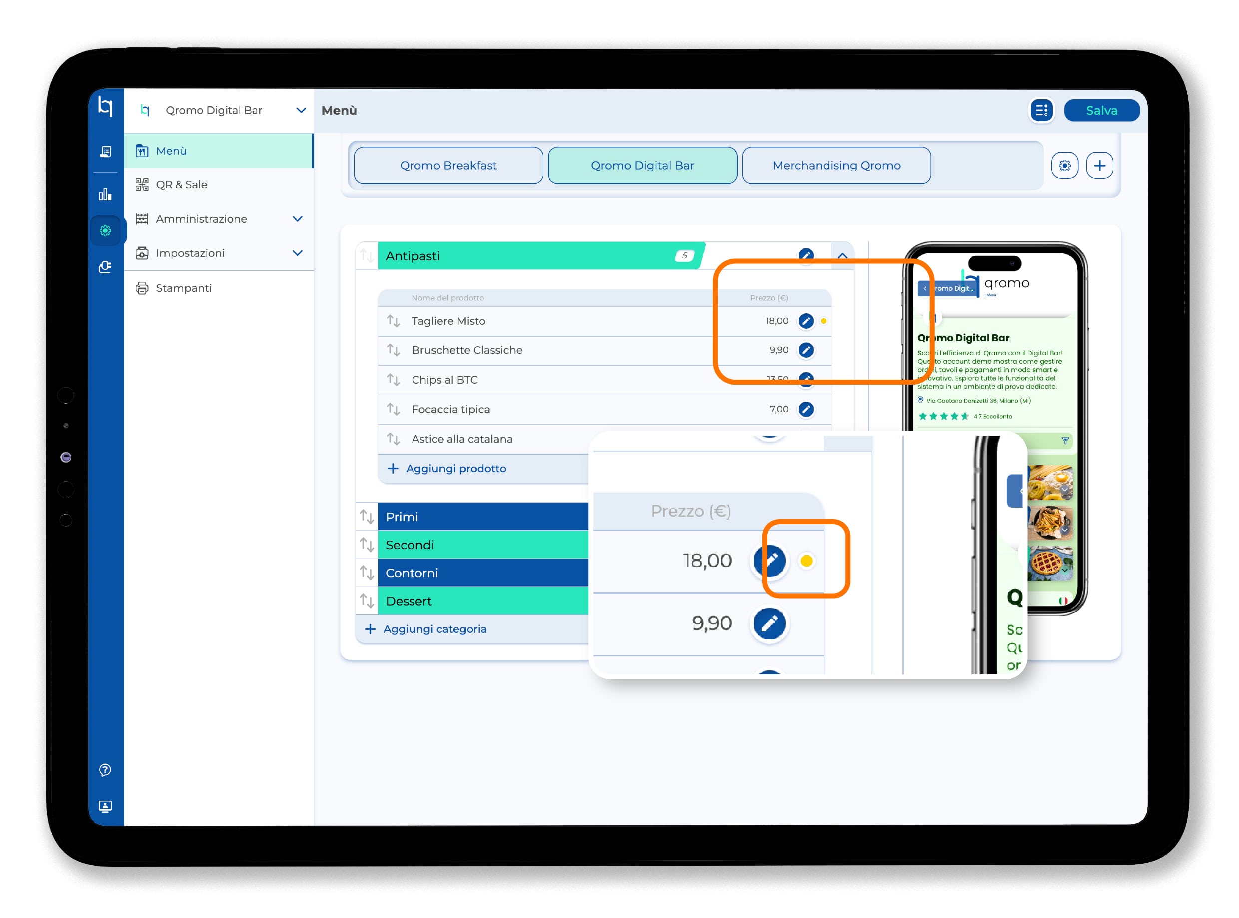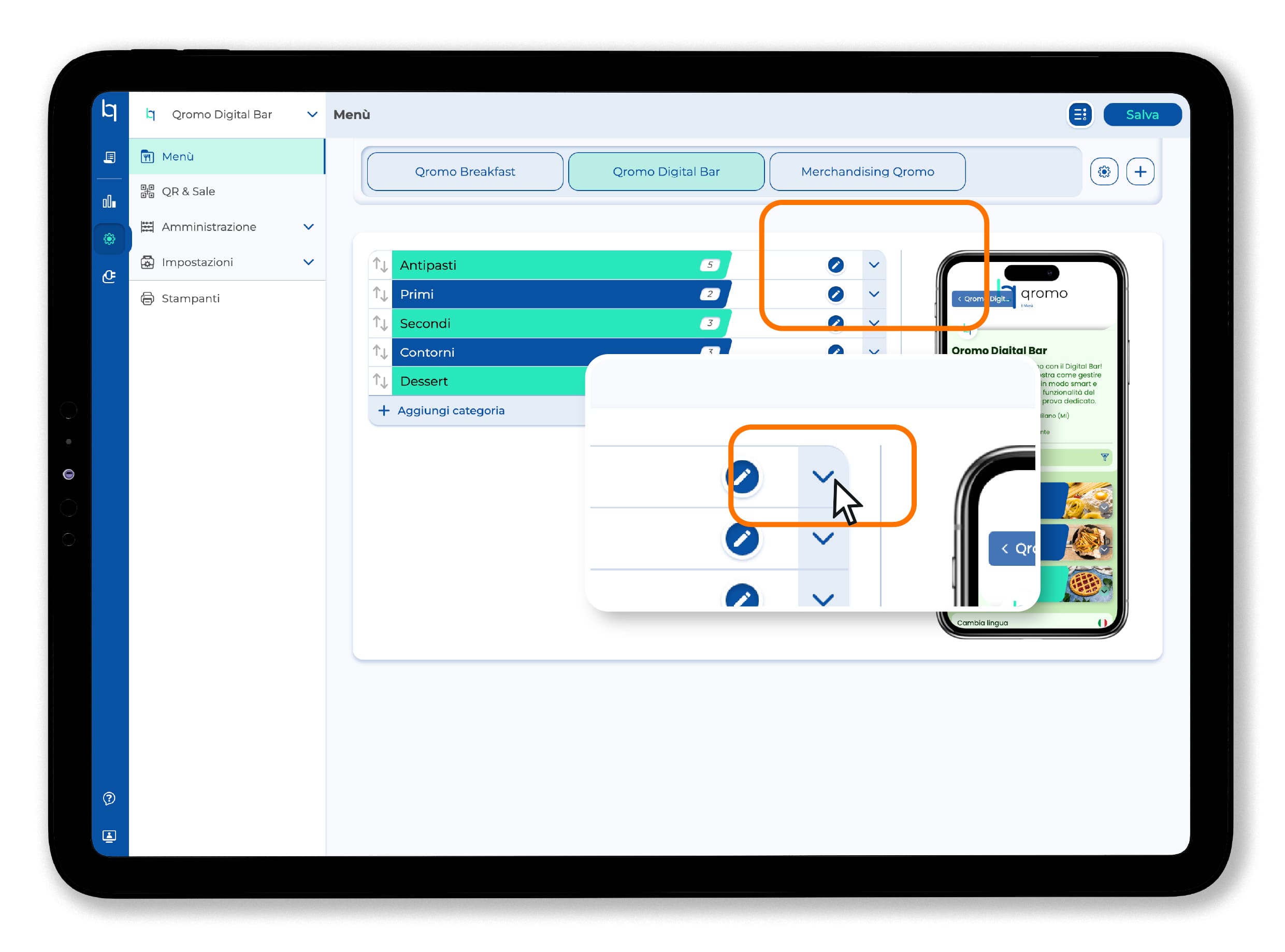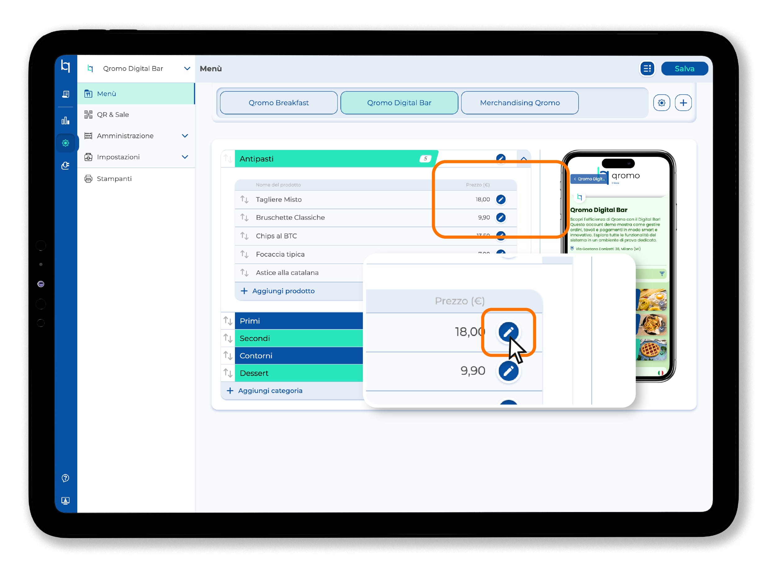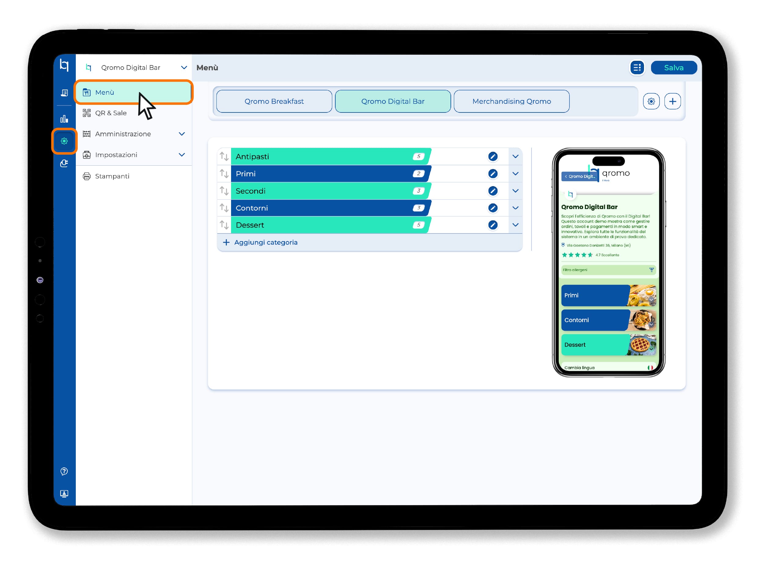 1. Accedi a Qromo, clicca sull’icona "⚙️" e seleziona la voce "Menù"