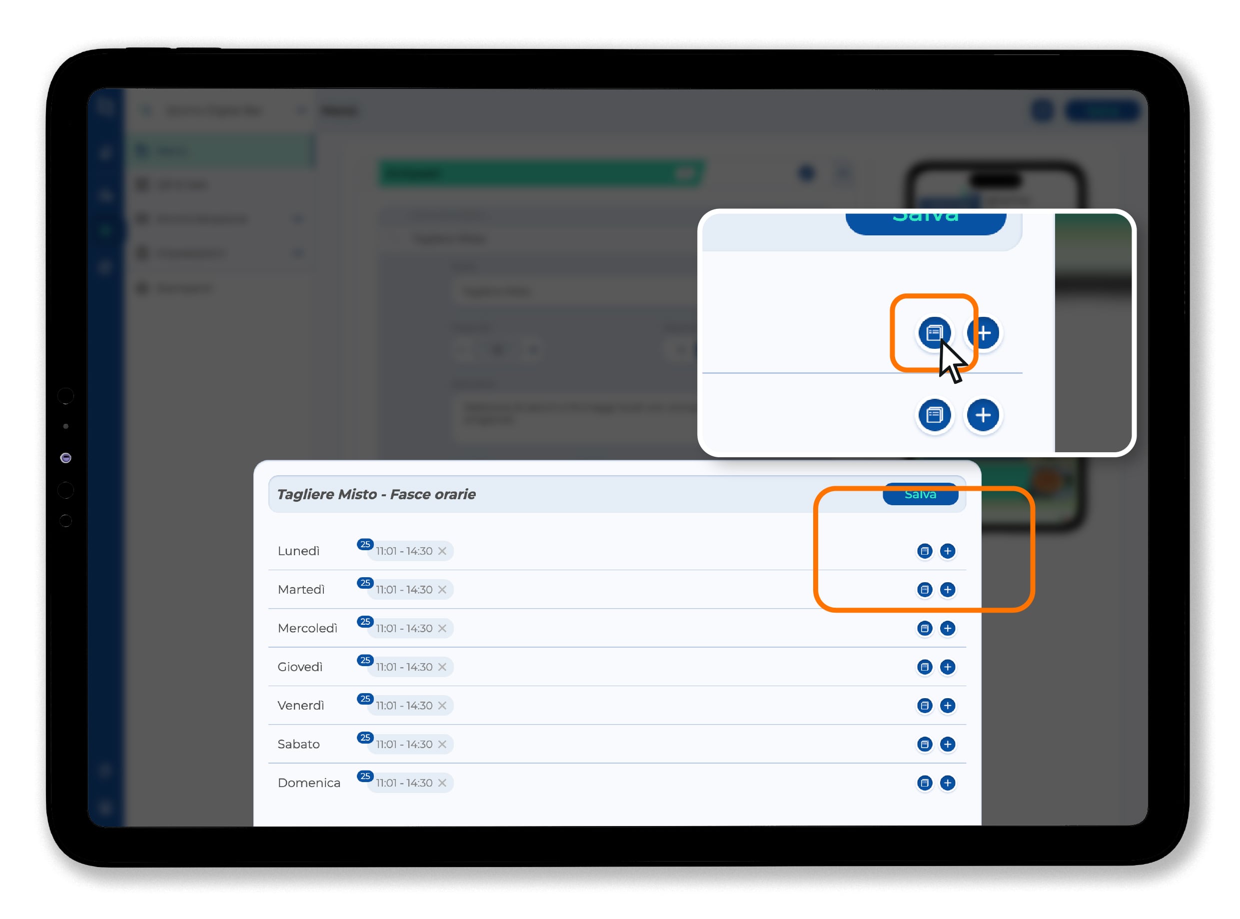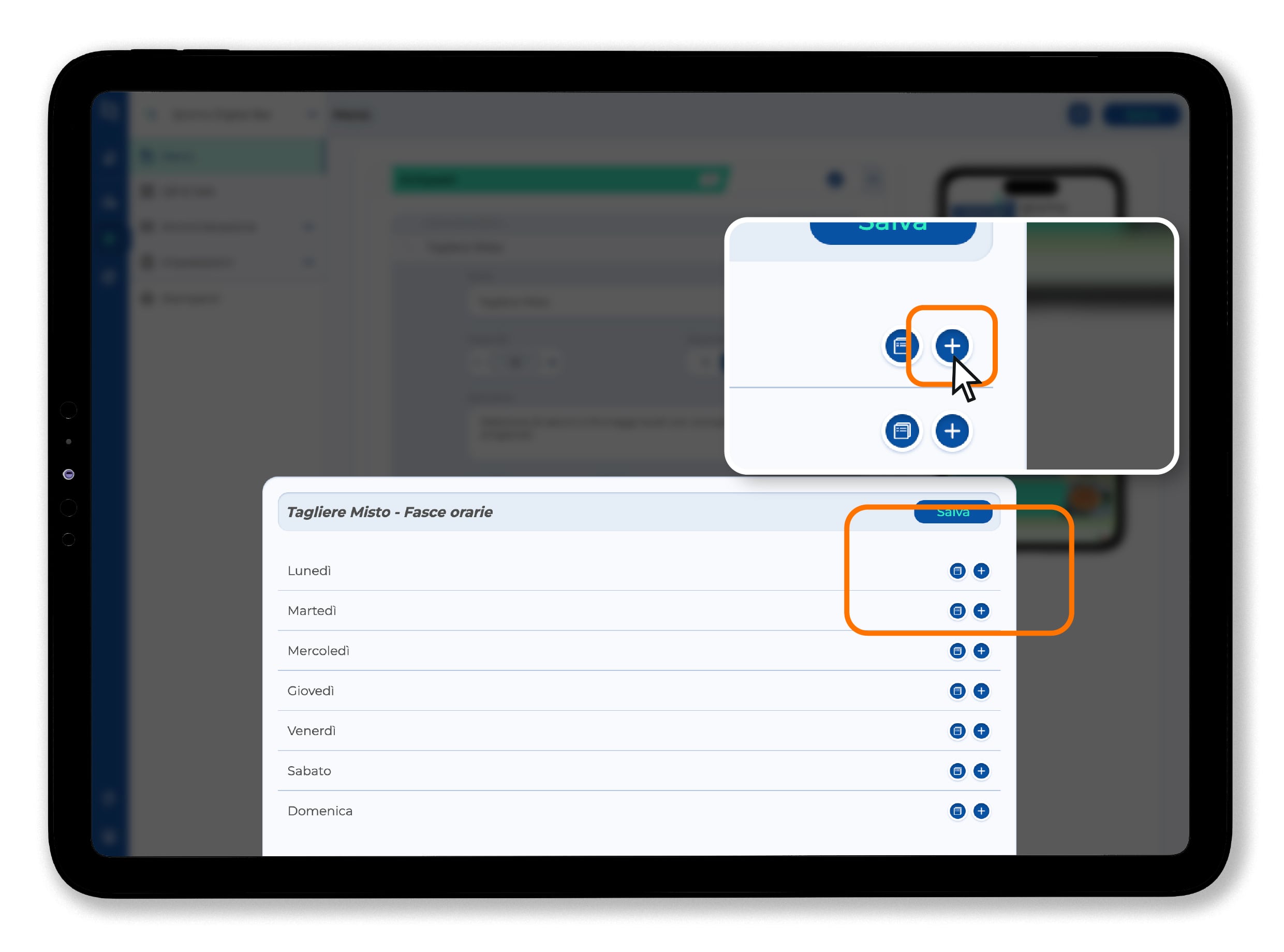 I prodotti ad orari ti permettono di mostrare automaticamente alcuni prodotti del menù in base ai giorni della settimana o agli orari della giornata.