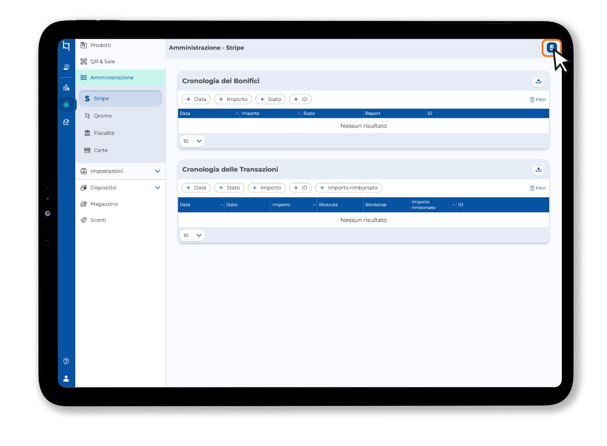 1. Cliccare sull'icona "⚙️", quindi apri la sezione Amministrazione → Stripe