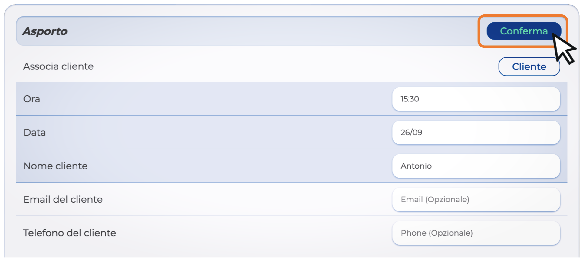 3. Inserisci i dettagli dell'ordine d'Asporto: