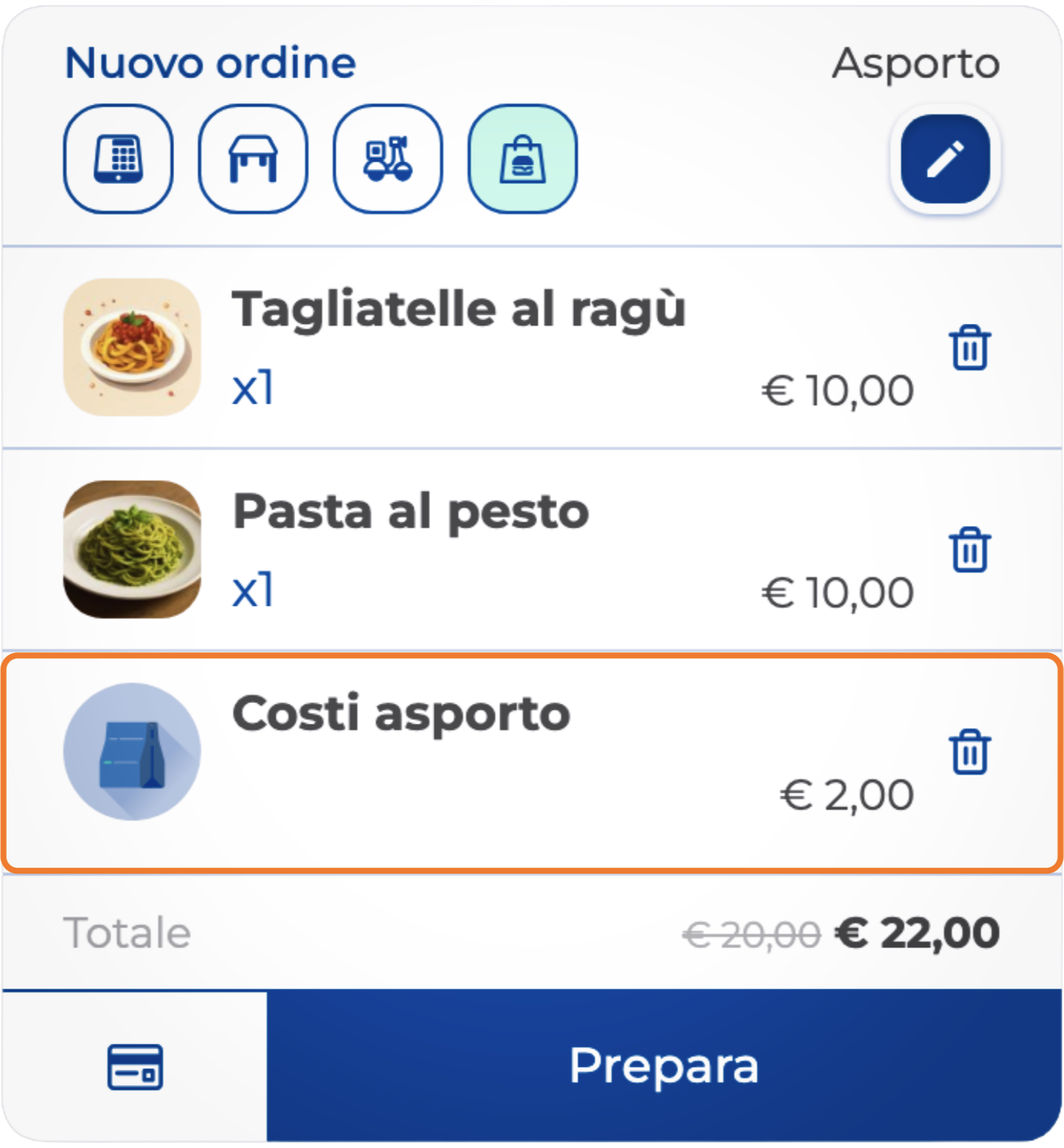 Il servizio Asporto è dedicato ai clienti abbonati al piano PRO e All in One