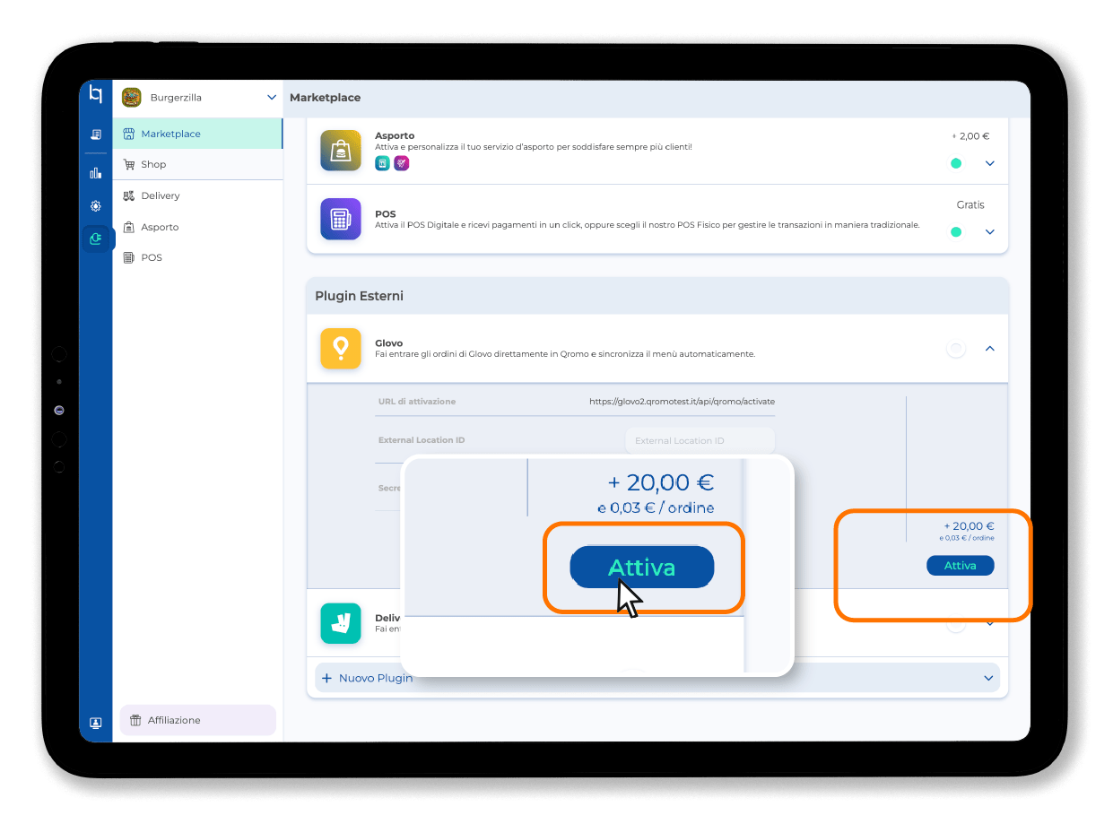2. Individua la voce Glovo, quindi fai click su Attiva.
