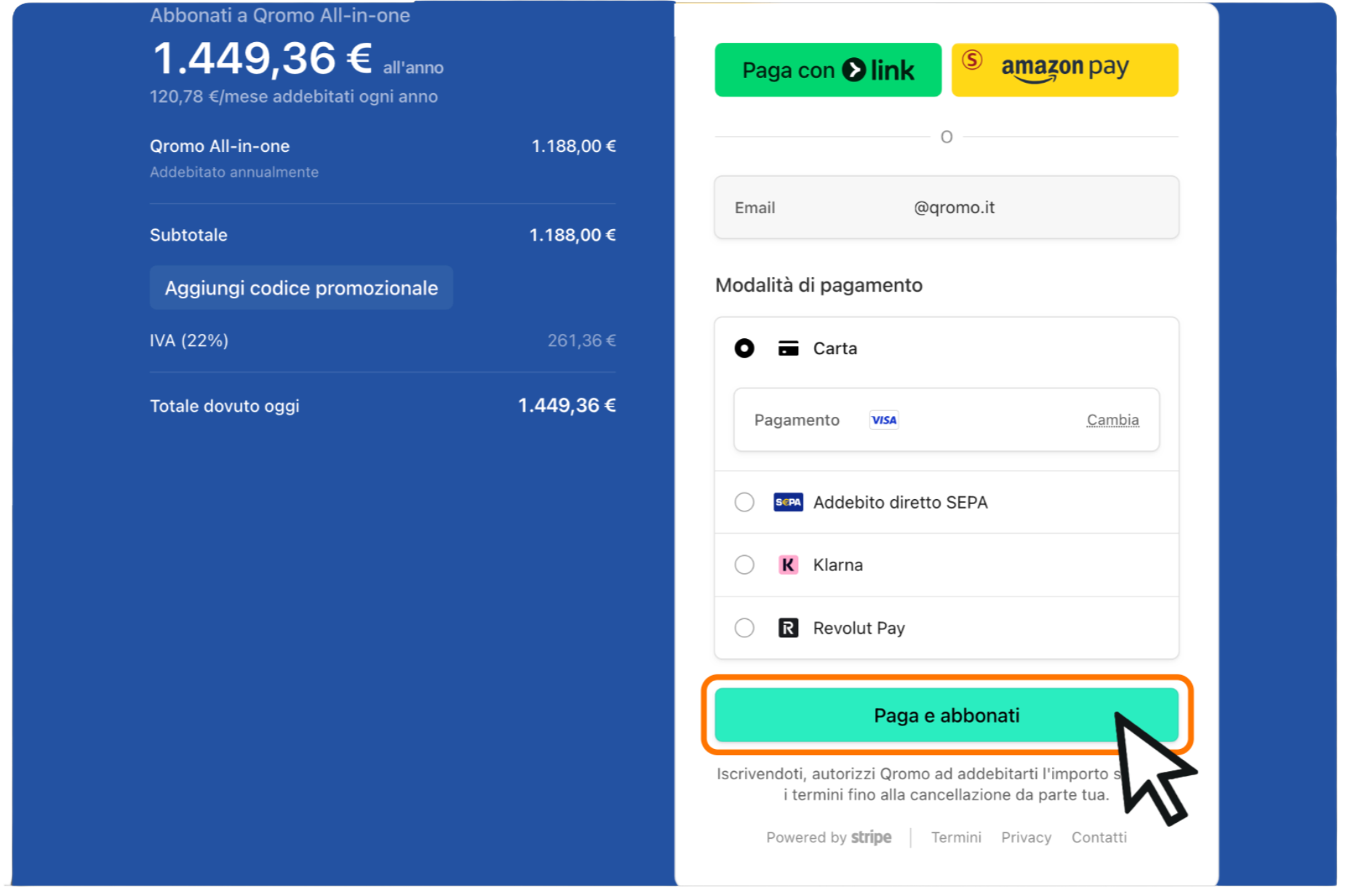 7. Inserisci i dati di pagamento e fai click su Paga e abbonati .