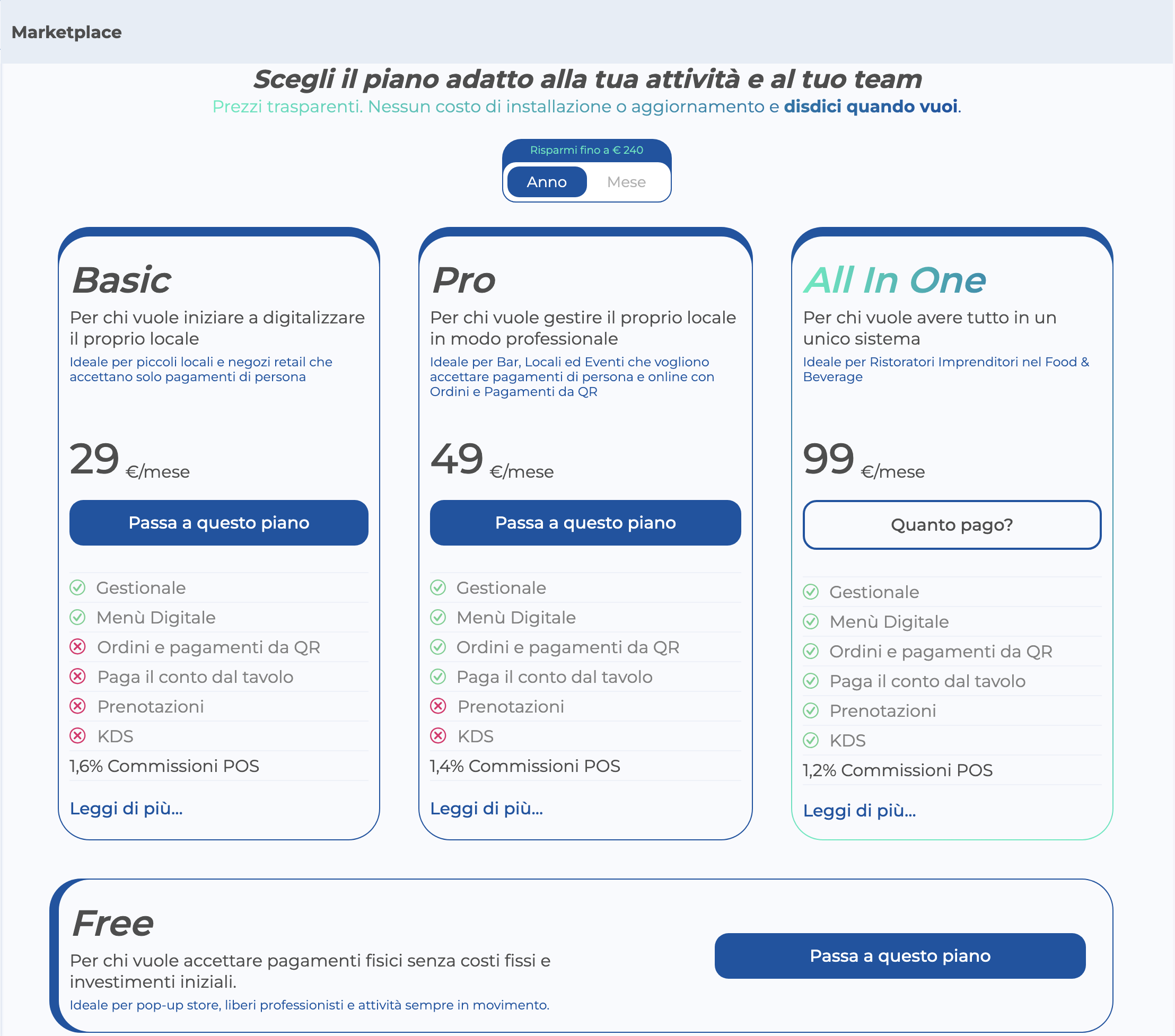 8. Una volta abilitato la vista sarà questa. Ci sarà scritto Quanto pago? in corrispondenza del Piano scelto.