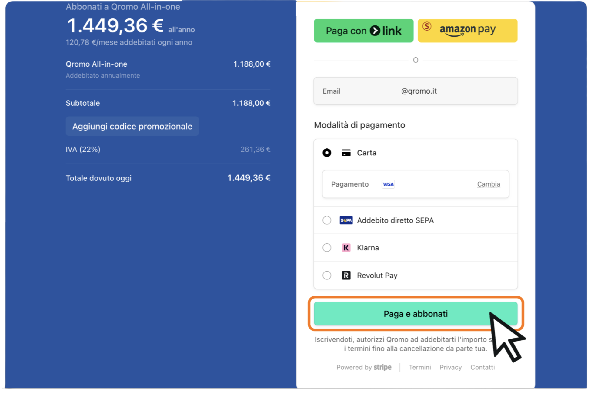 7. Inserisci i dati di pagamento e fai click su Paga e abbonati .