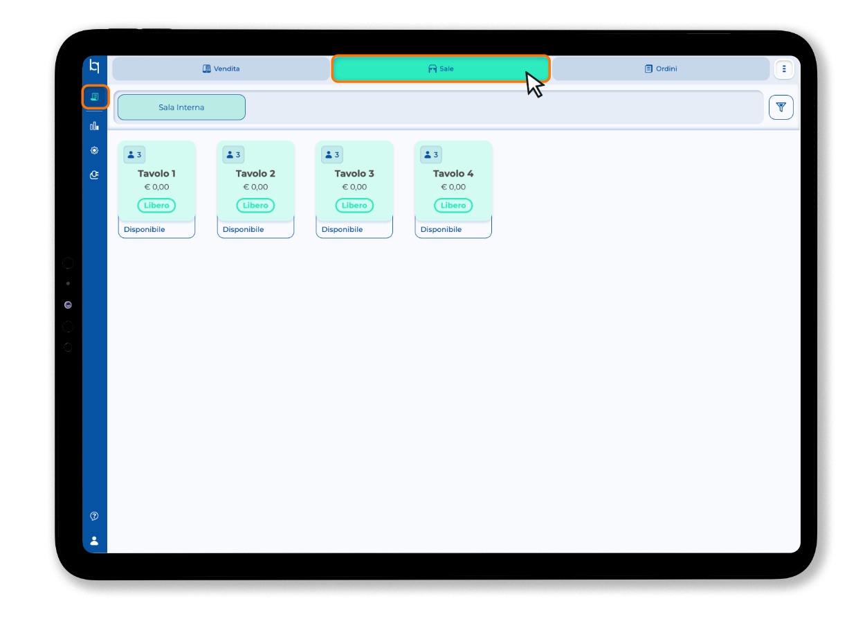 2. Individua la Sala e seleziona il tavolo su cui vuoi inserire l’ordine.