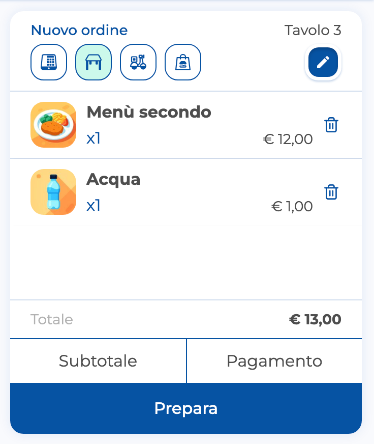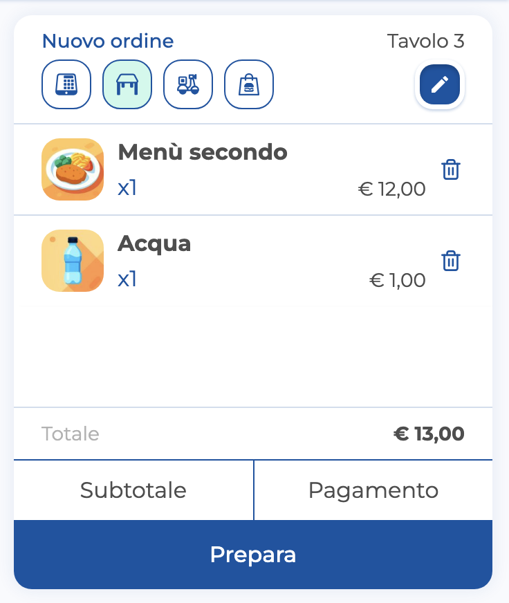 3. Una volta completato l’inserimento, nel Riepilogo Nuovo Ordine individua l’icona del Tavolo e cliccaci sopra, quindi apri la sala e seleziona il tavolo