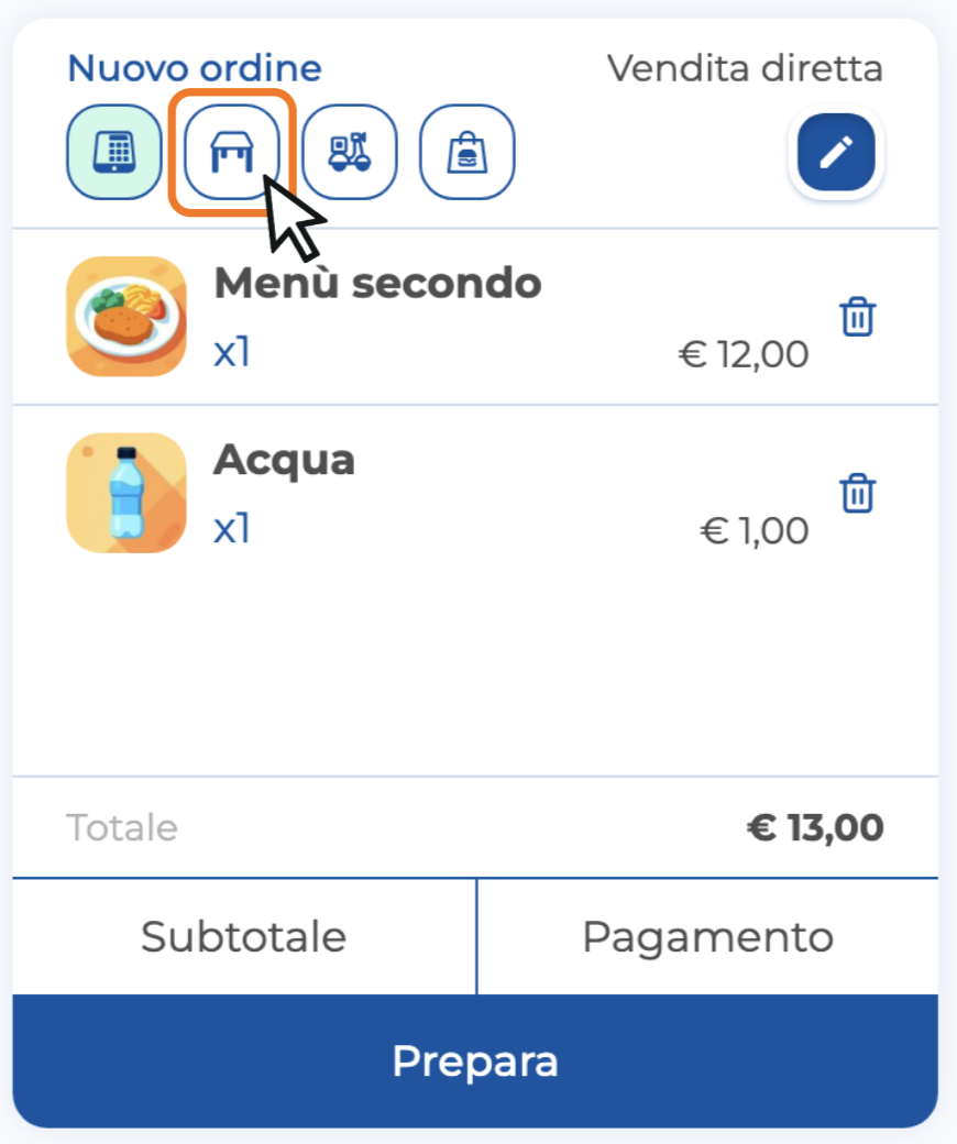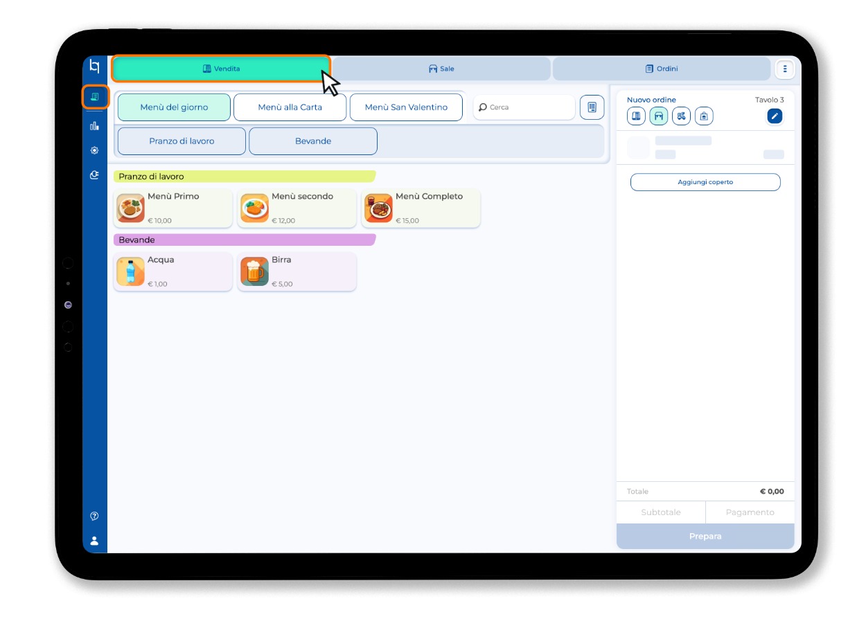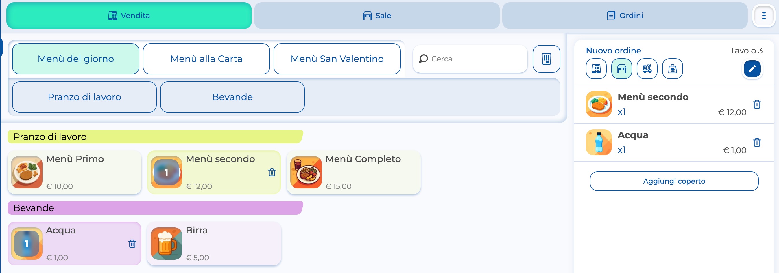3. Una volta selezionato, apre in automatico la Vendita dove puoi selezionare i prodotti.