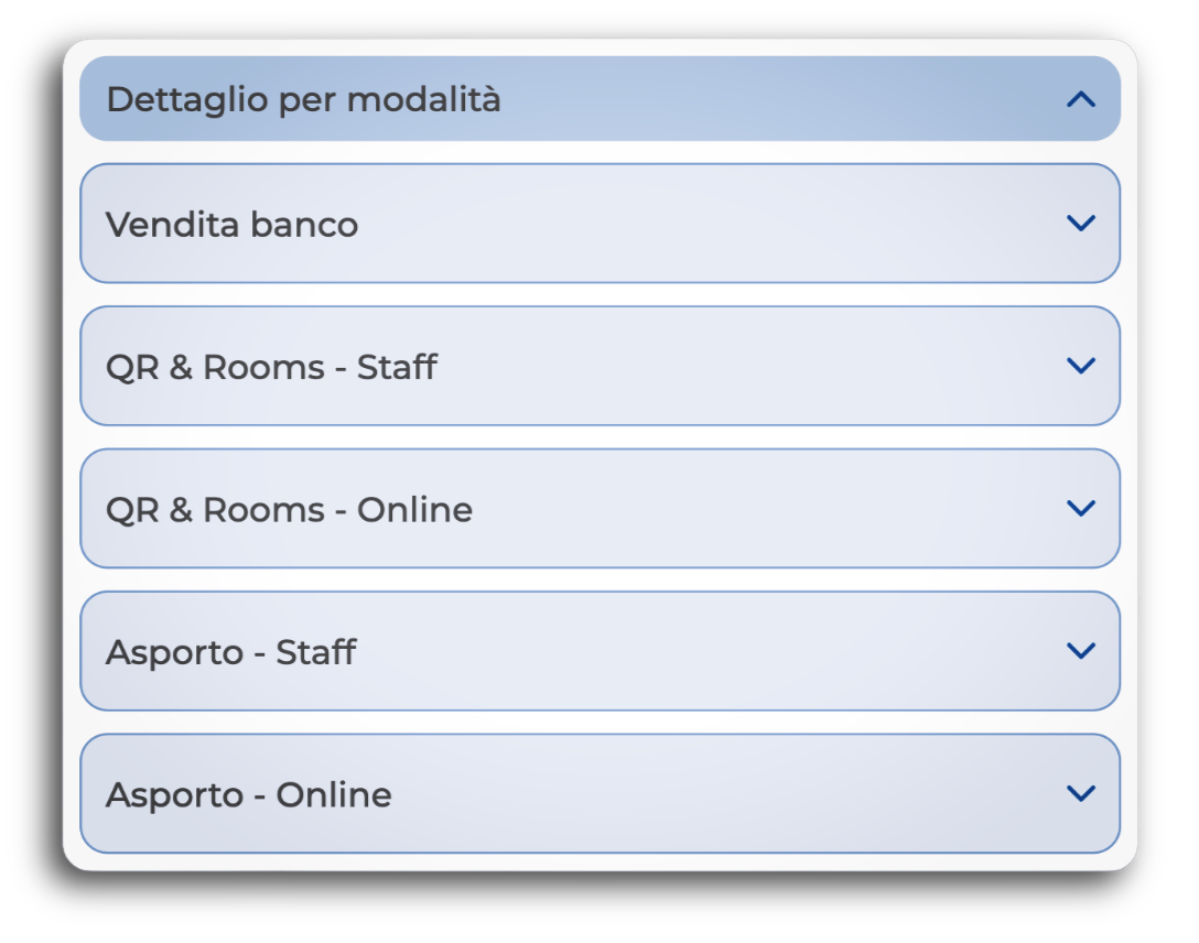 Nel pannello Dettaglio per modalità puoi vedere con precisione da quale canale di vendita provengono i tuoi incassi.