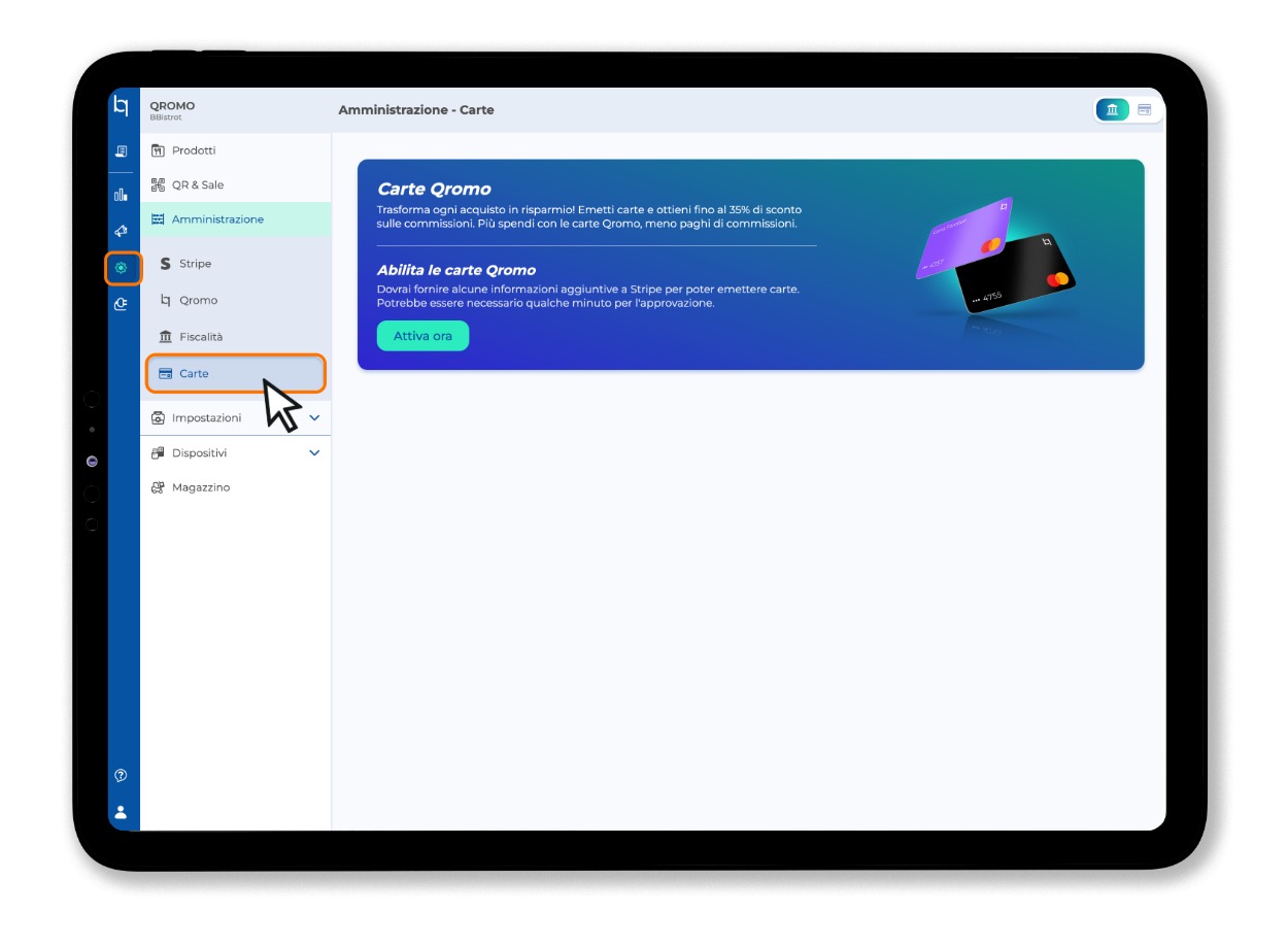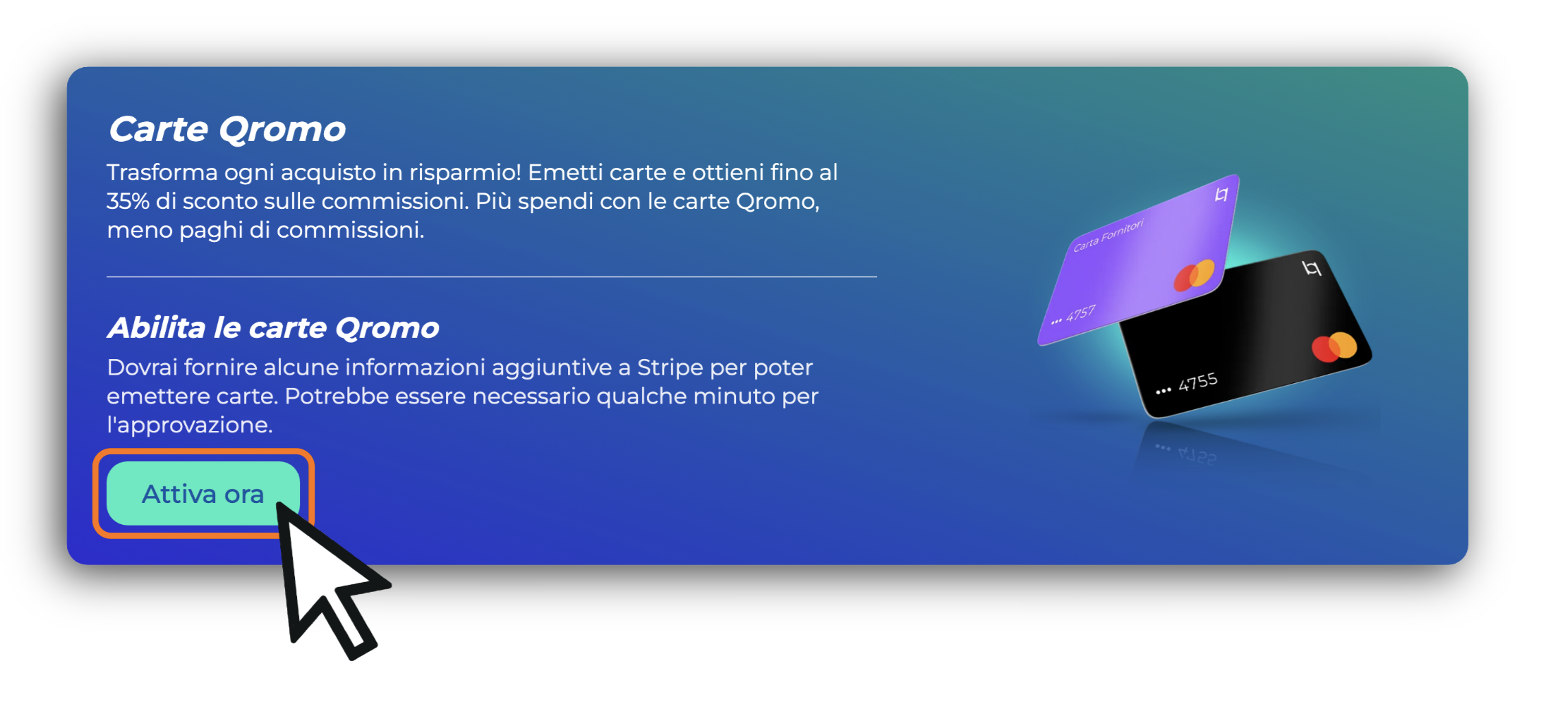 ✅ Nota bene: Potrebbe esserti richiesto un documento di verifica. Segui i passaggi indicati per completare la verifica e poter accedere alle Carte Qromo.