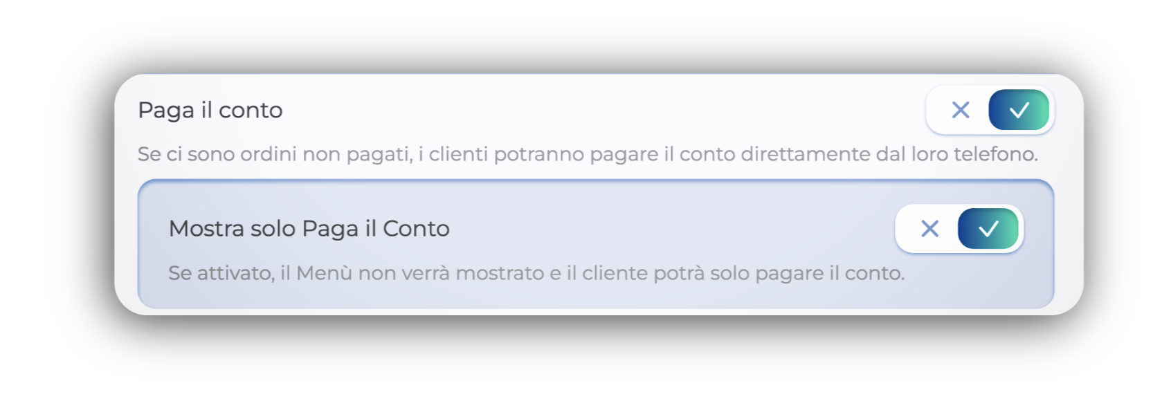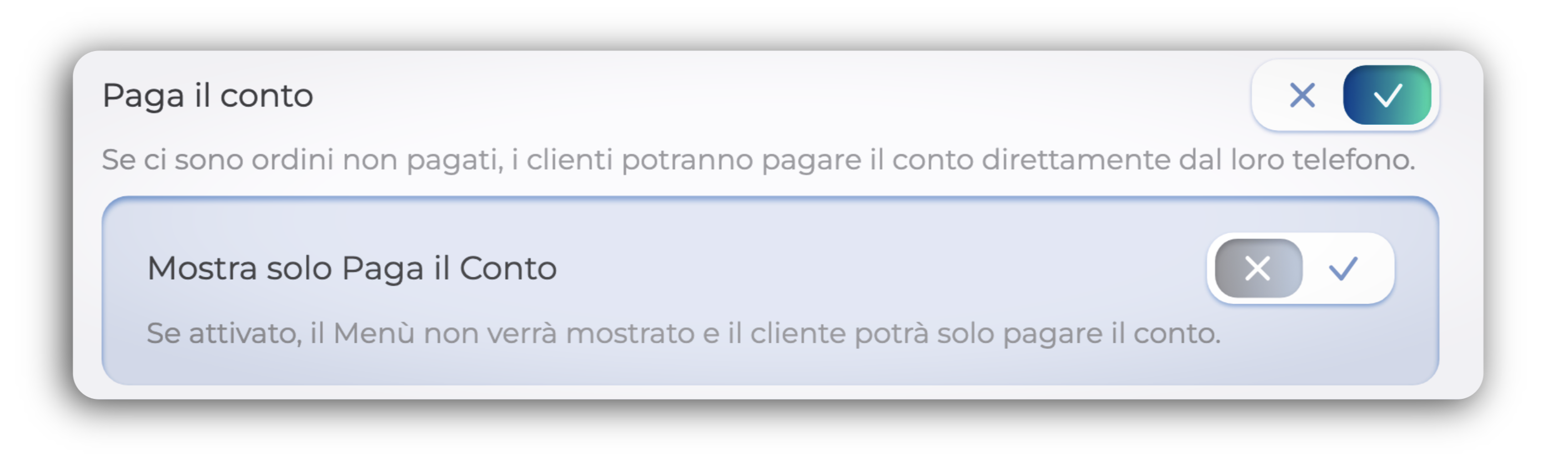 Paga il Conto + Mostra solo Paga il Conto