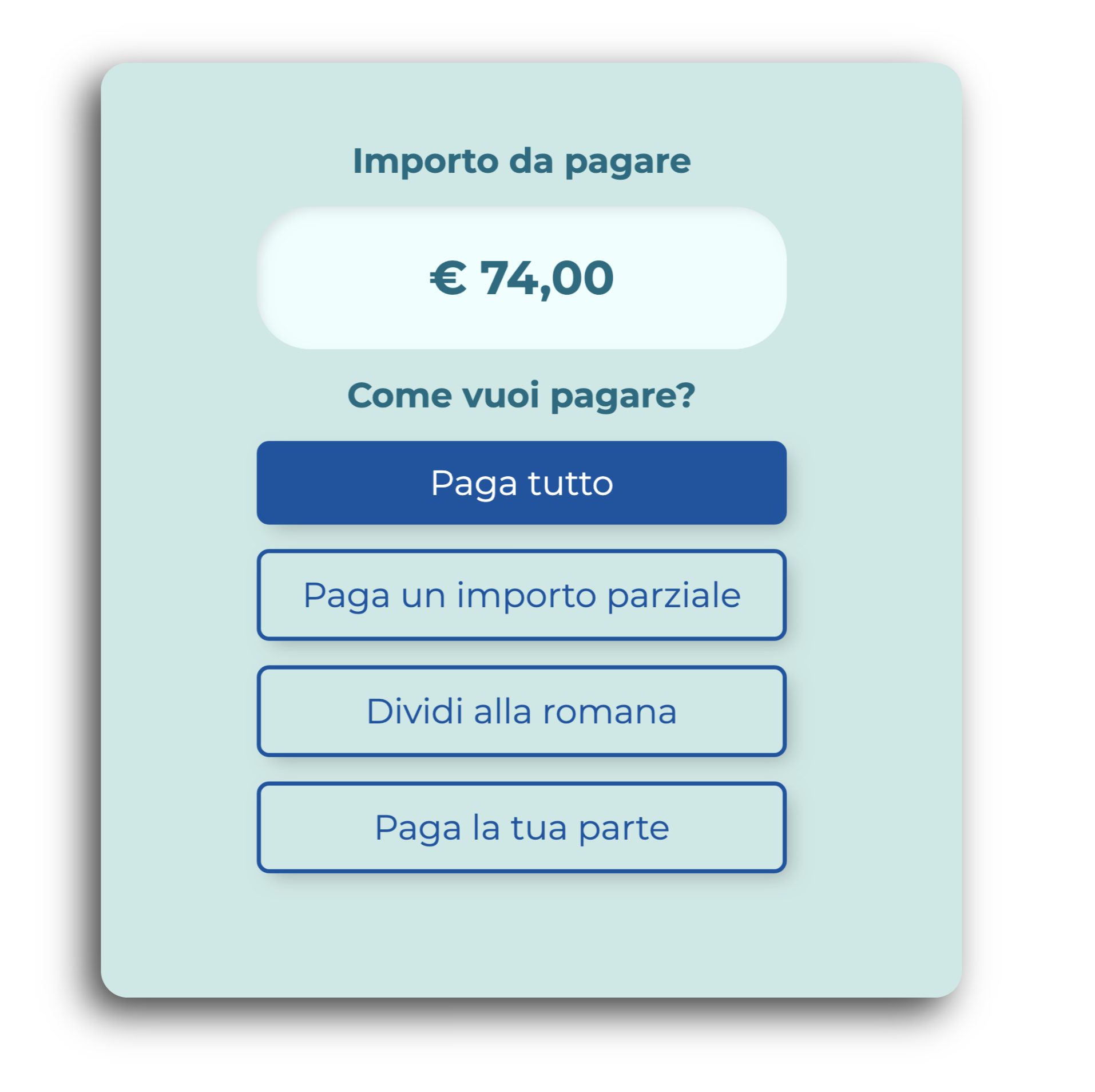 2. Può saldare il conto scegliendo la modalità di divisione del conto
