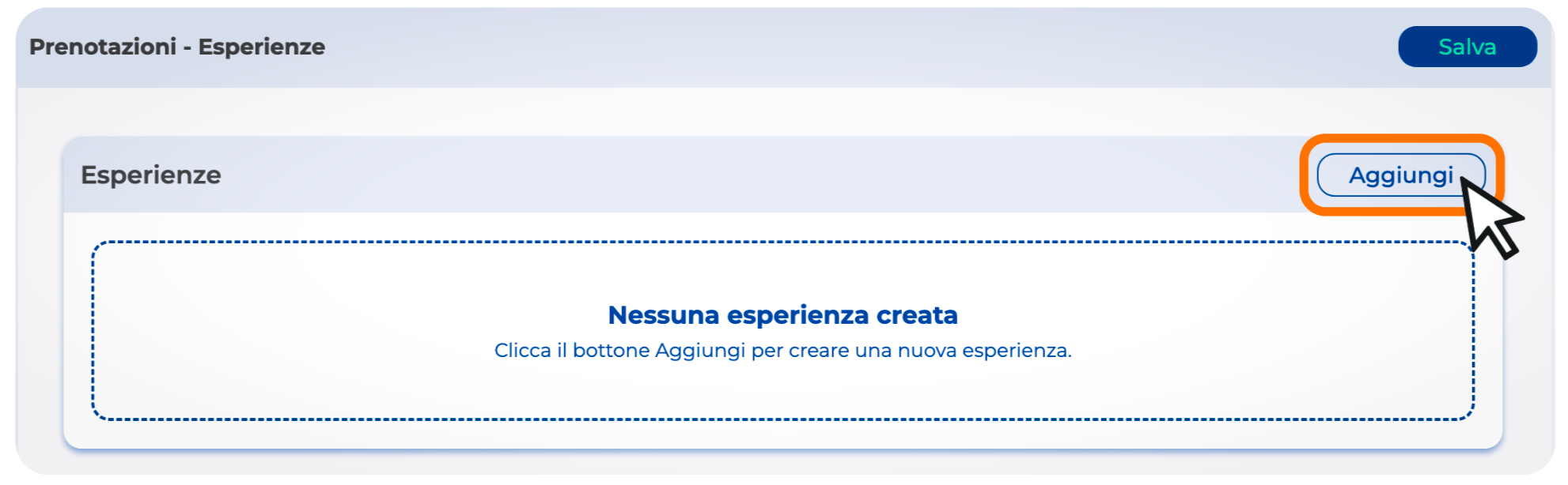 In questa sezione vediamo come creare un’esperienza, ovvero ogni singola tipologia di servizio che offri ai tuoi clienti.