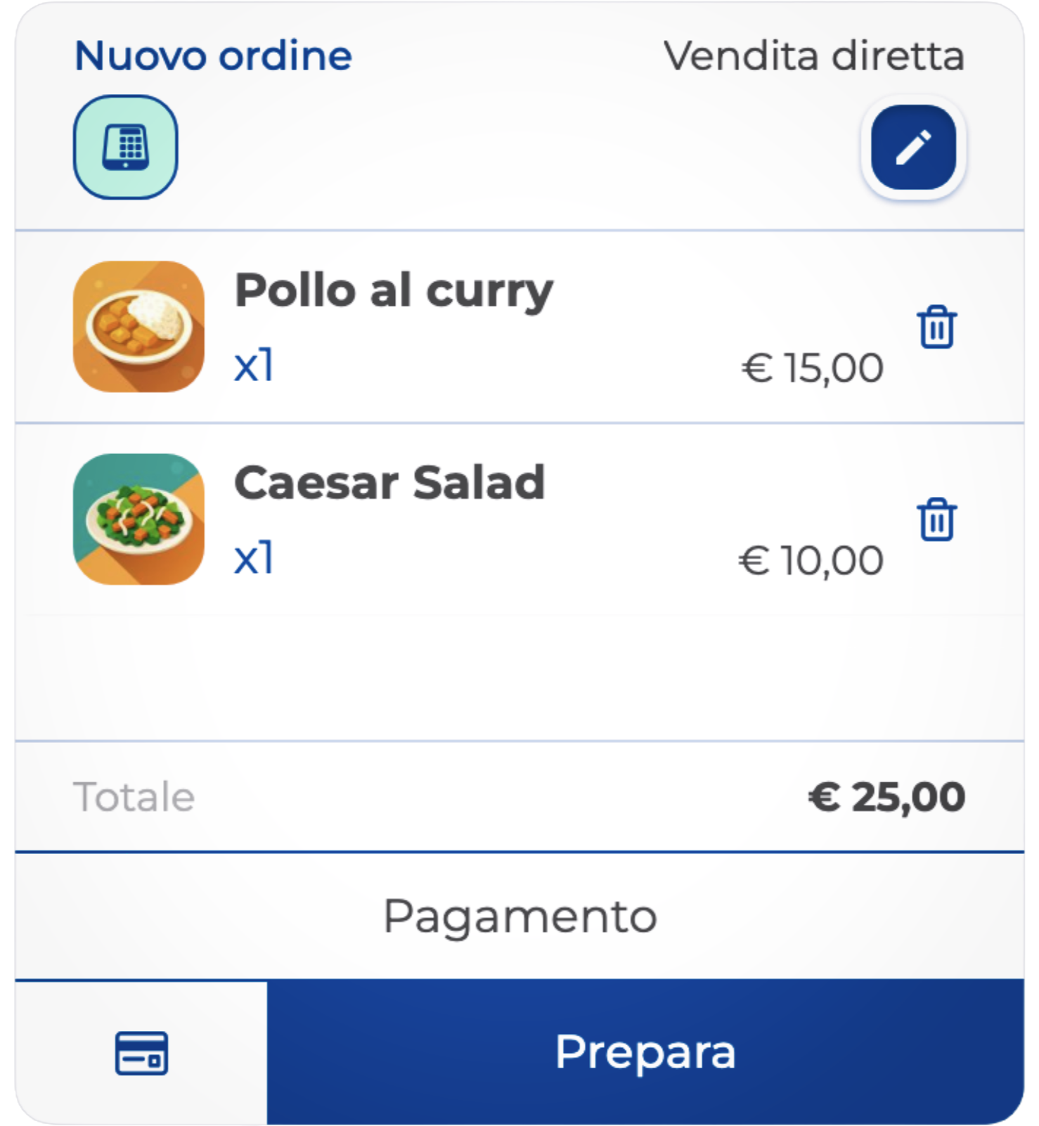 Se hai impostato delle variazioni, vedrai anche quelle nella composizione dell'ordine.