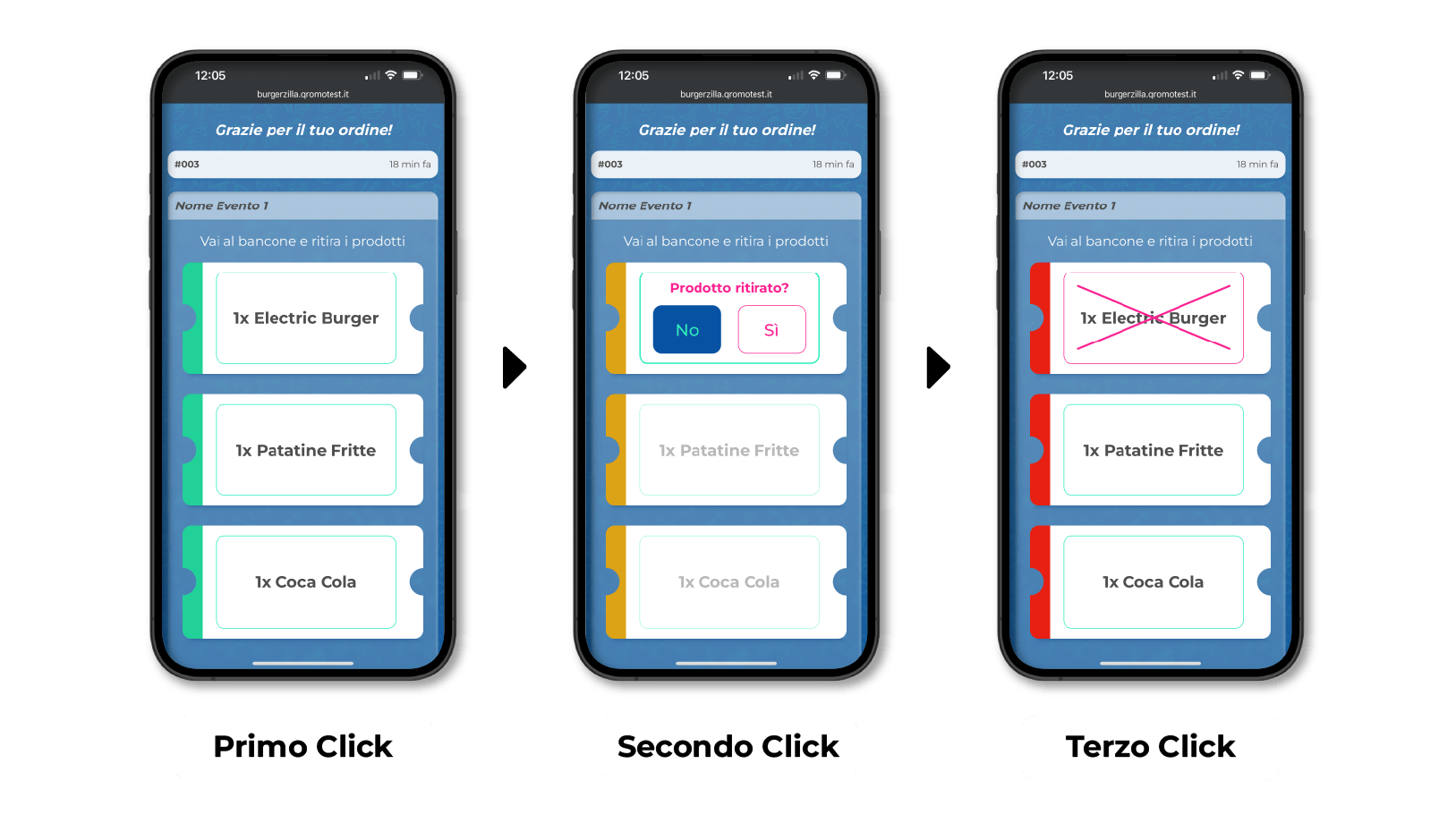 La modalità Ticket (TAP) sostituisce la tradizionale unghiata sullo scontrino, ma in versione digitale. Funziona allo stesso modo: il cliente può ritirare sia un singolo prodotto che l’intero ordine.