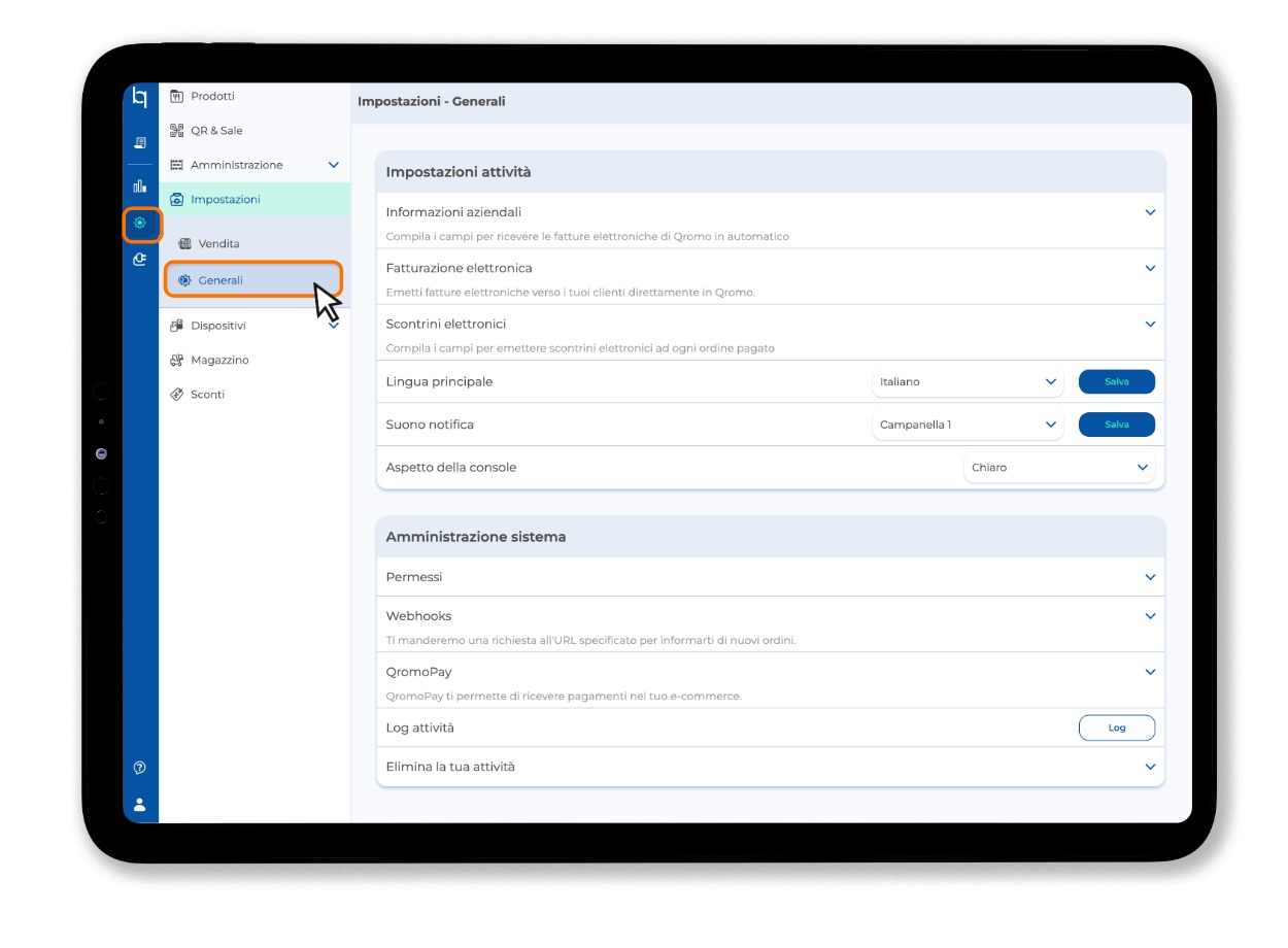 Questa sezione spiega come attivare gli scontrini elettronici.