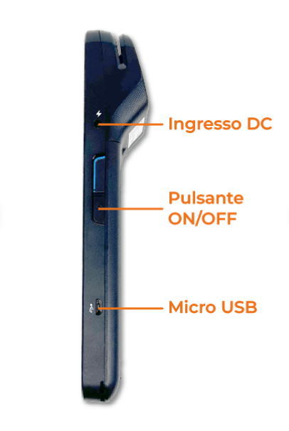 1. Accendi il POS tenendo premuto il pulsante ON/OFF sul lato destro del dispositivo.