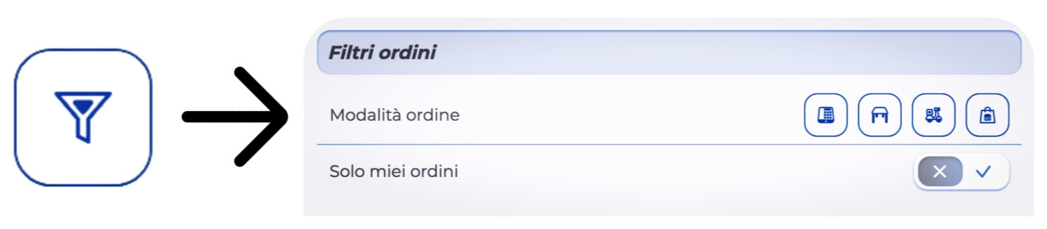 Solo miei ordini: permette di escludere gli ordini online e quelli delle altre eventuali Postazioni e visualizzare solo quelli inseriti dalla Postazione che si sta utilizzando