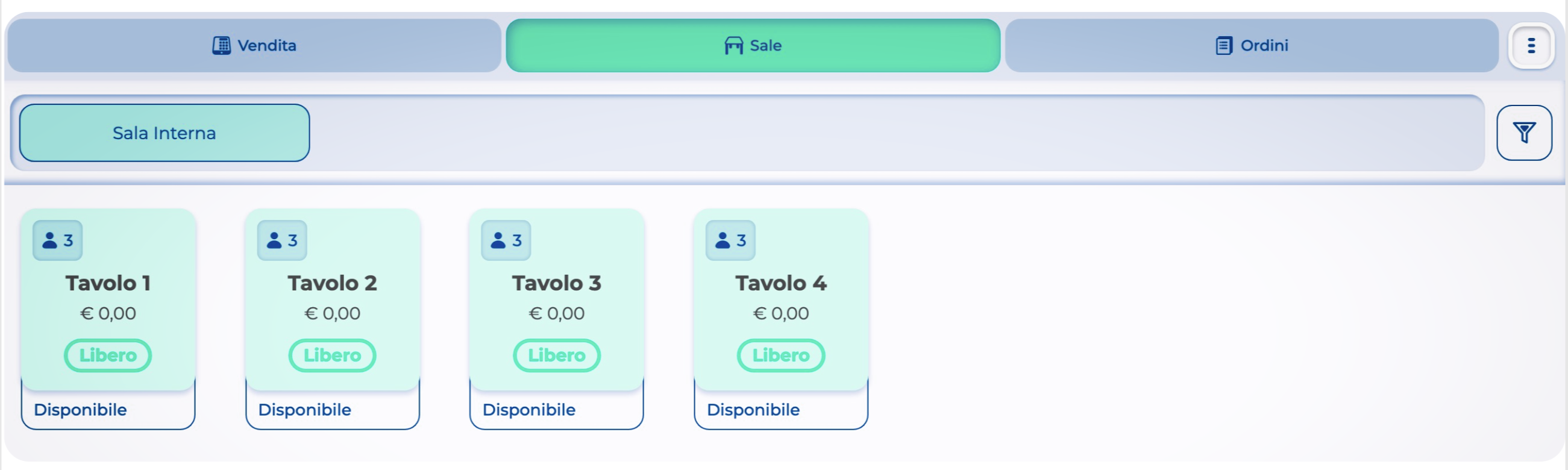 Puoi iniziare un nuovo ordine aprendo la Sala e cliccando sul tavolo