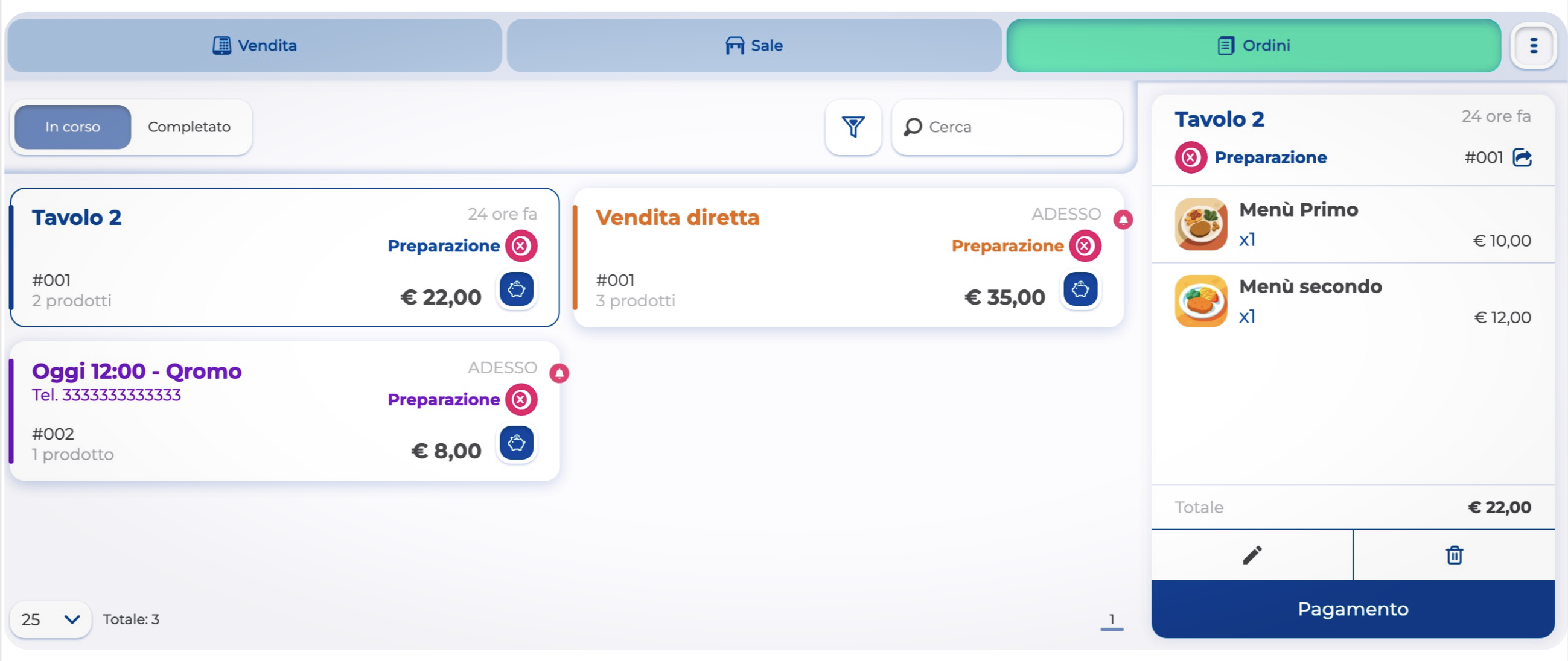Prepara: invia l’ordine in preparazione senza eseguire il pagamento. La comanda viene stampata automaticamente dalla Qromo Printer