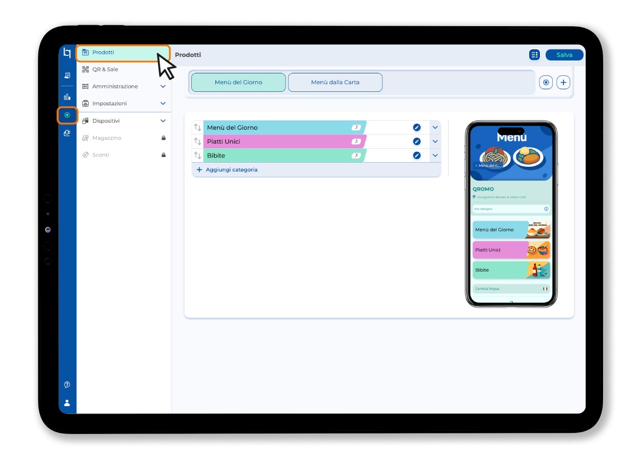 1. Clicca sull’icona "⚙️" e seleziona la voce Prodotti.