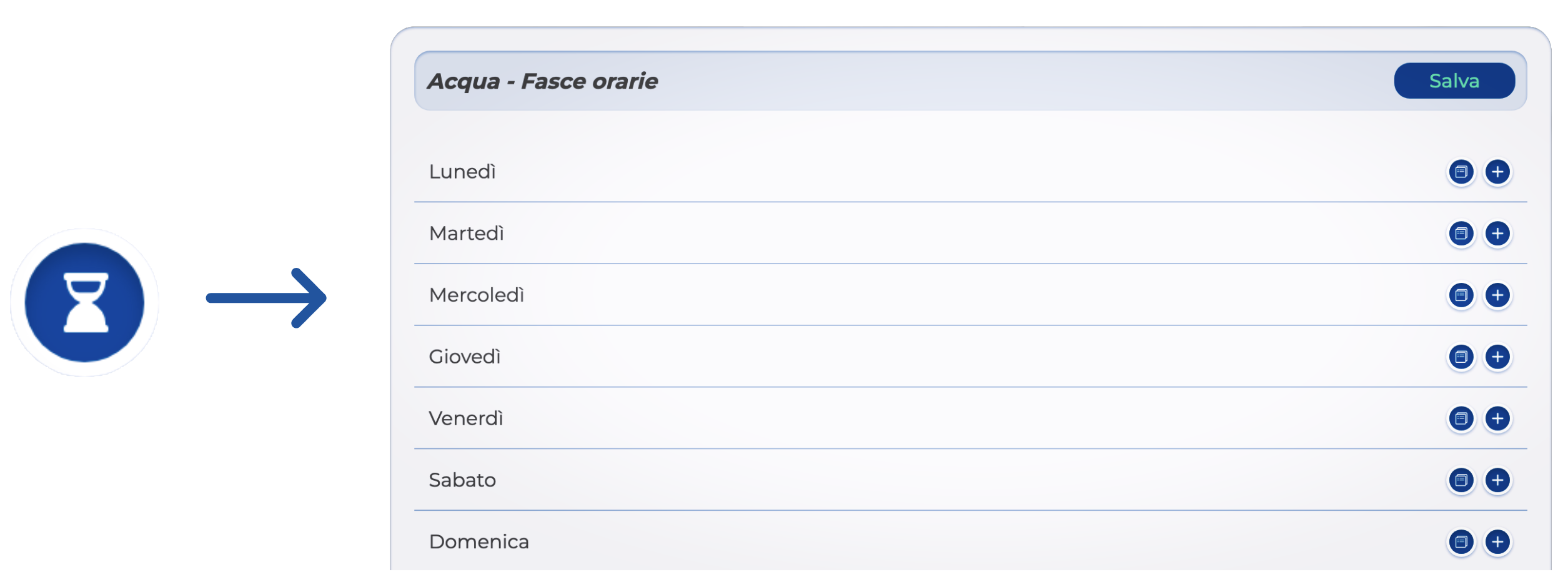 3. Clicca sull’icona della clessidra, poi quella del "+" per aggiungere un nuovo orario.