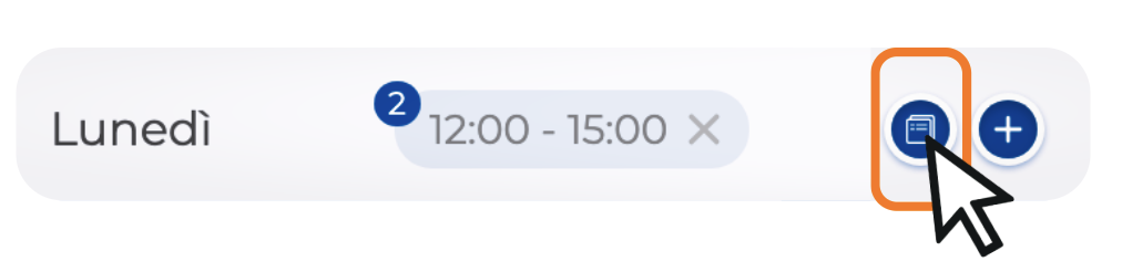 Copia orario: Se premi questo pulsante, copierai l'orario inserito su tutti gli altri giorni in automatico