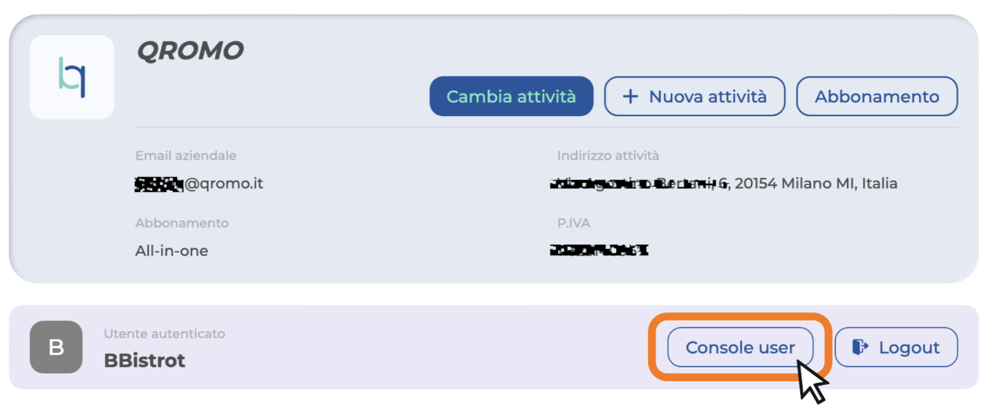 2. Ti apre la Schermata Utente, seleziona la voce Console User.