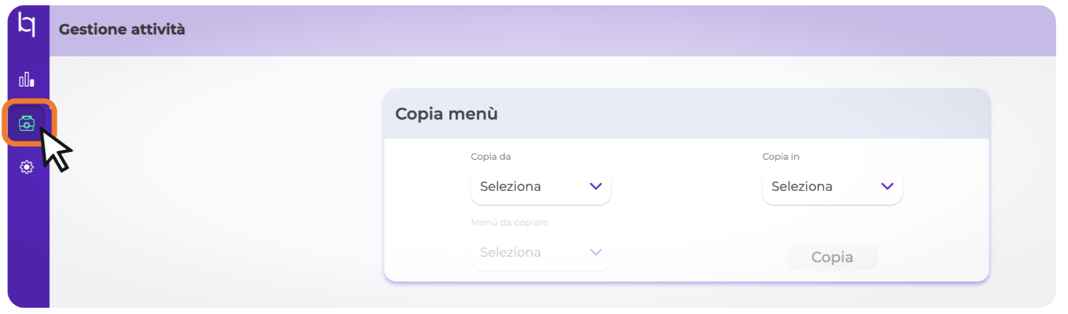 3. Seleziona l'icona della valigetta nella banda viola per aprire la sezione Gestione Attività.