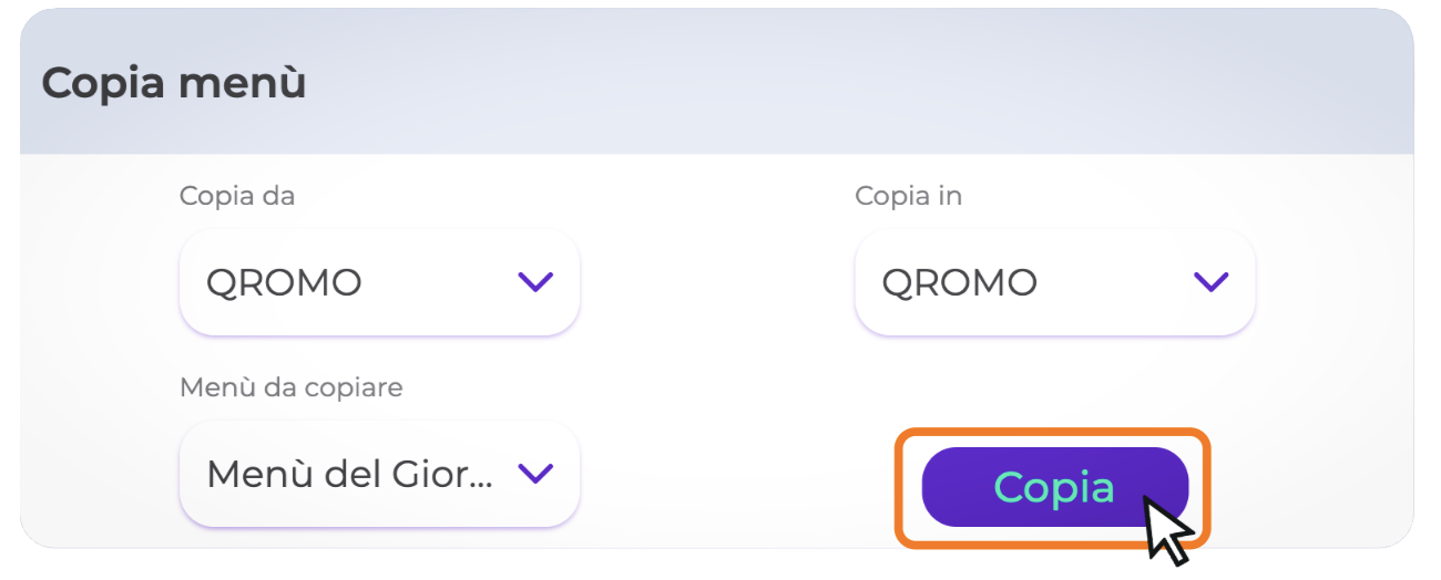 4. Seleziona l’attività di origine e quella di destinazione per copiare il menù.