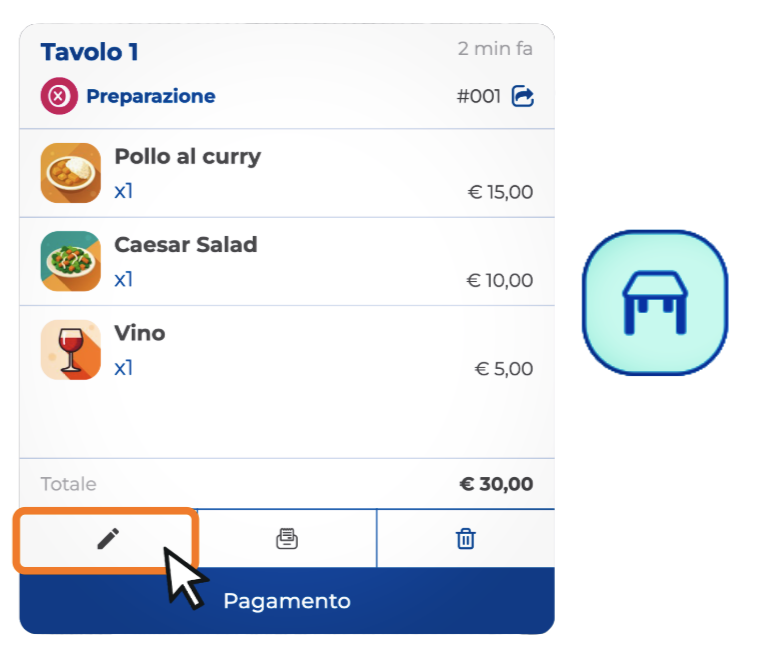 2. Premi sull'icona della matita e poi vai sull’icona del tavolo all'interno al riepilogo d'ordine.