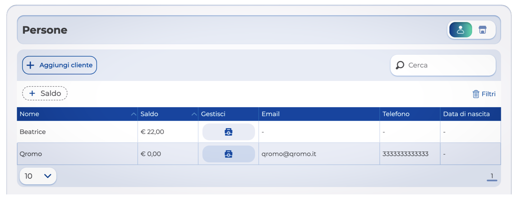 Ogni volta che emetti uno documento collegato a un cliente registrato, Qromo salva automaticamente i dati nella sua scheda. In questo modo, se ne avrai bisogno in futuro, troverai già tutte le informazioni pronte, senza doverle inserire nuovamente.