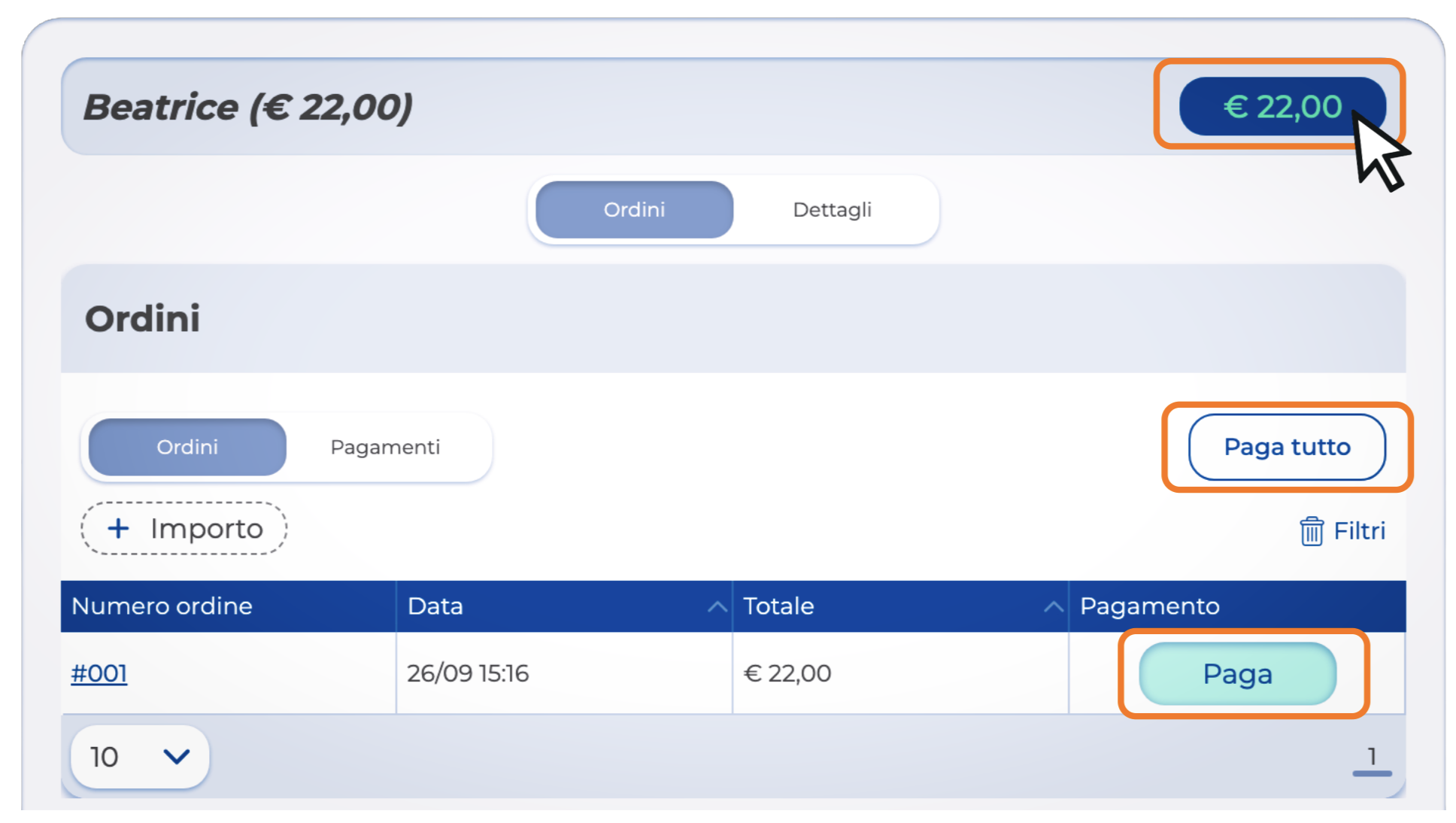 1. Accedi alla Sezione Ordini, quindi seleziona il tasto Opzioni Extra