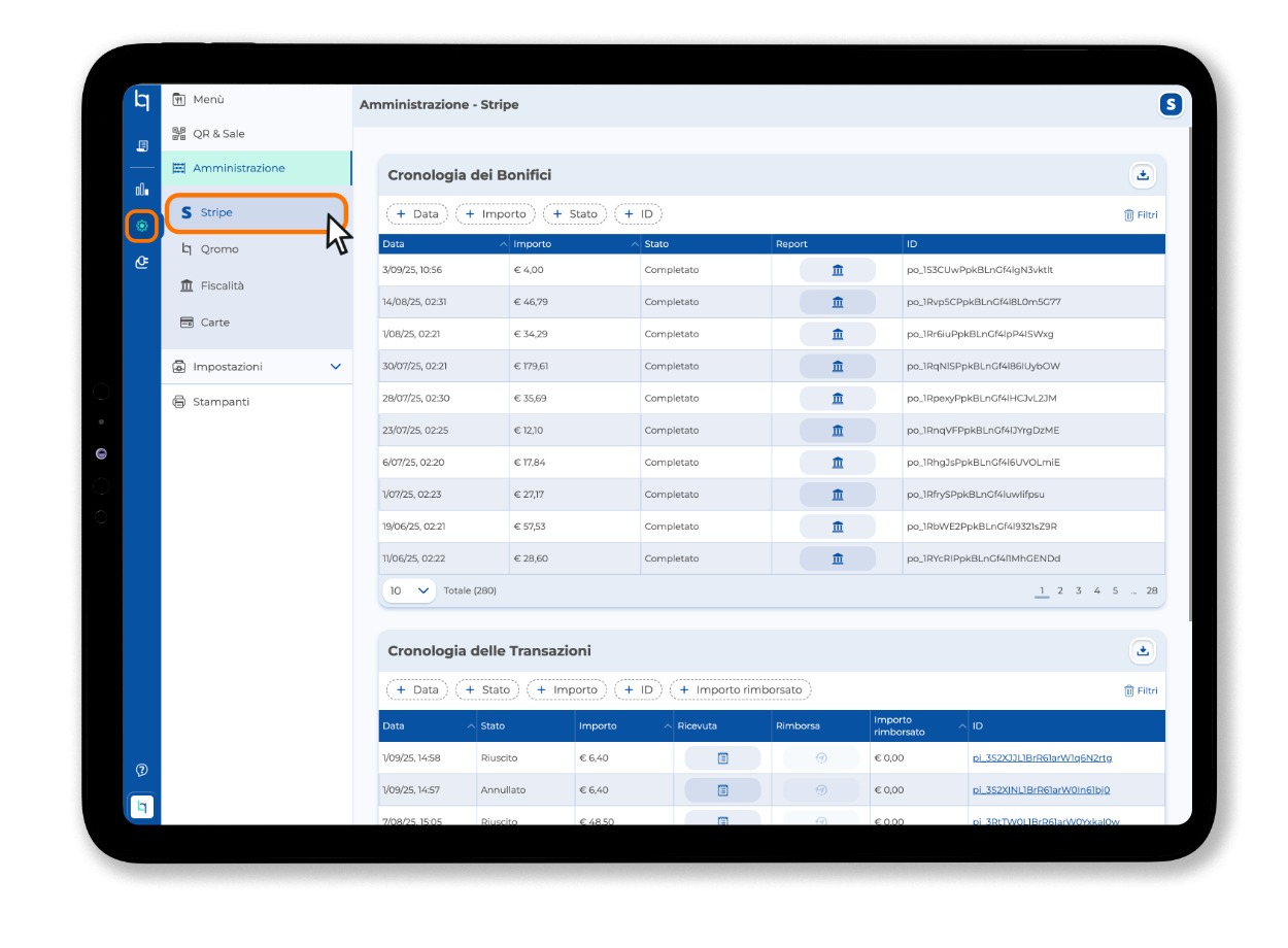 Con Qromo, puoi effettuare prelievi istantanei direttamente dal tuo credito che viene generato dagli incassi elaborati da Stripe, quindi dei pagamenti ricevuti tramite il POS Qromo e QR.