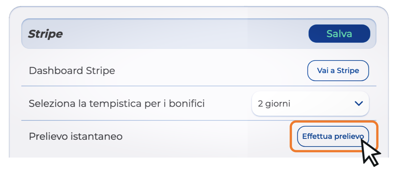 Prima di iniziare, assicurati di aver collegato correttamente il tuo account Stripe, poiché i fondi saranno trasferiti sul conto che hai scelto in precedenza.