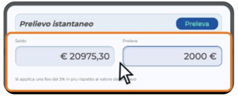 Per il prelievo istantaneo si applica una commissione del 2% in più rispetto al valore del prelievo