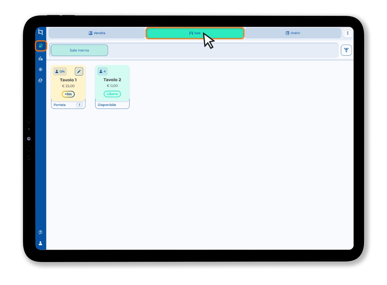 1. Apri la sezione operativa e accedi alla sezione Sale.