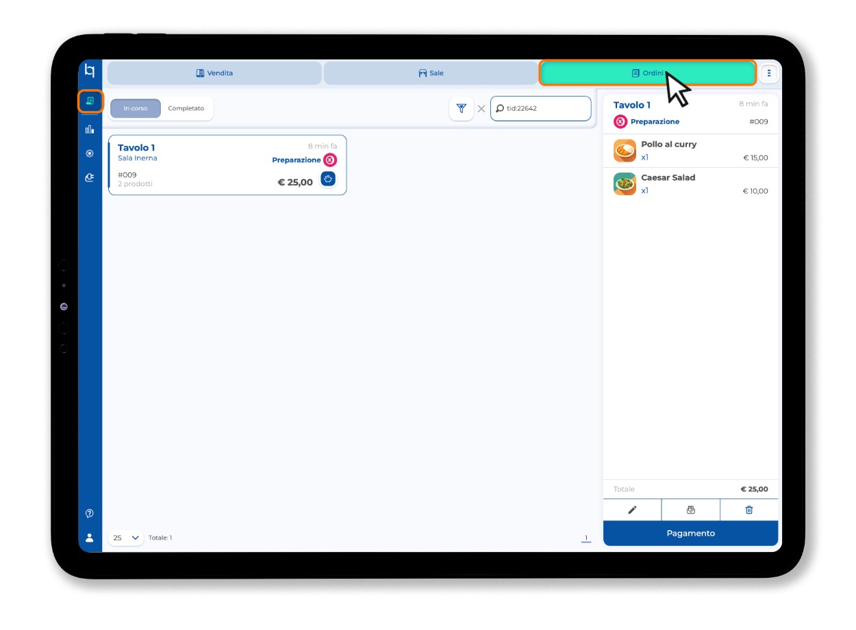 1. Apri la sezione operativa e accedi alla sezione Ordini.