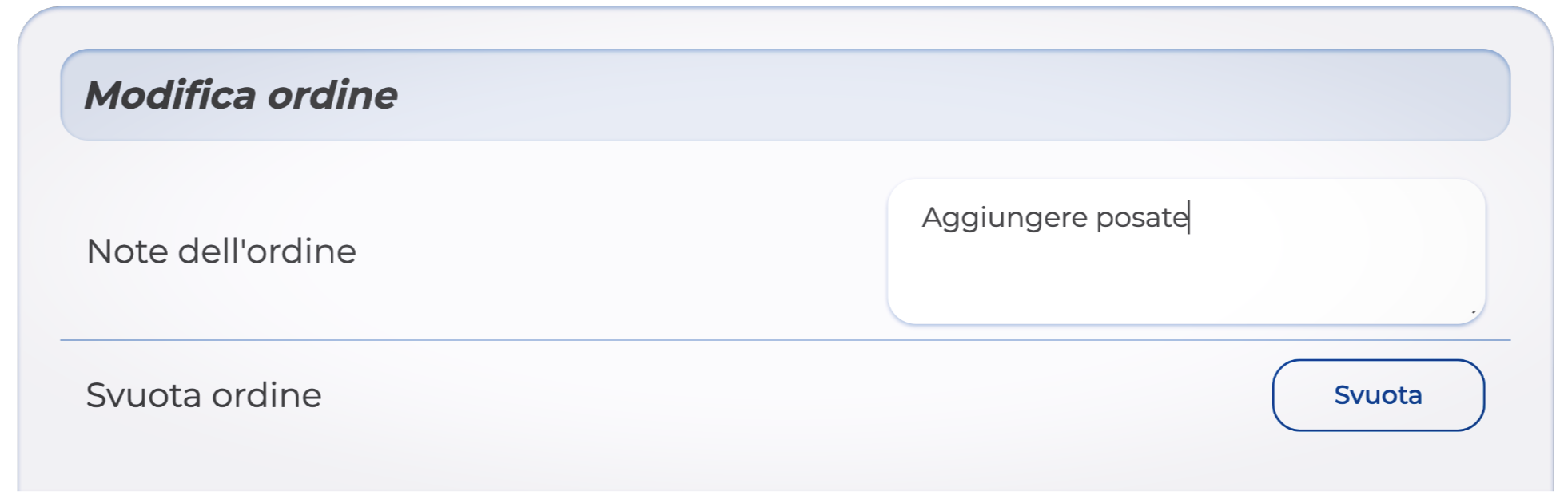Vediamo come aggiungere una nota o una comunicazione all'intero ordine: