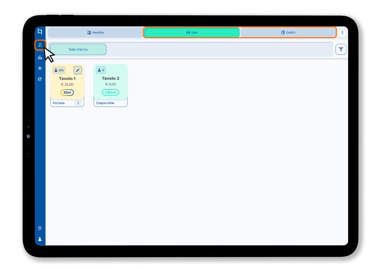 1. Apri la sezione Ordini o la sezione Sale,