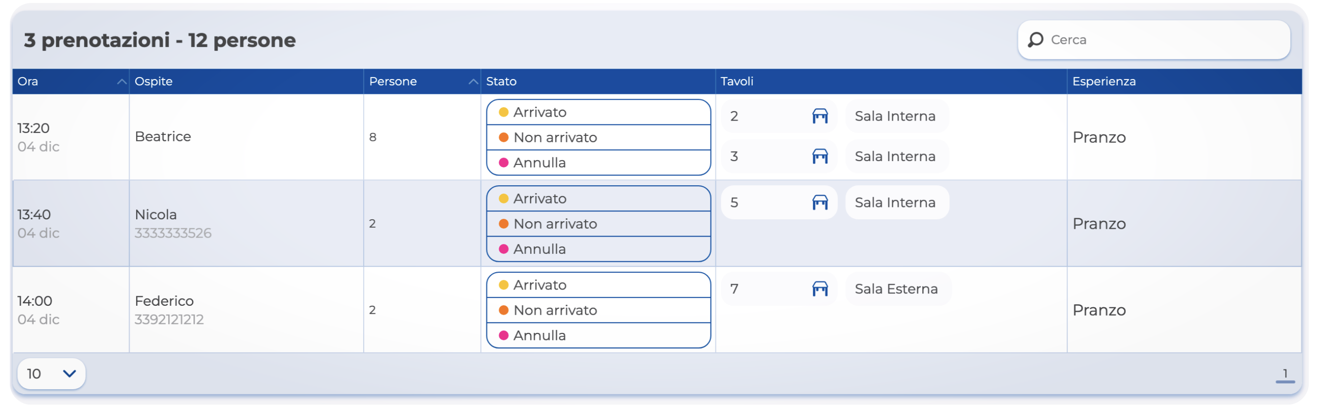 Tabella prenotazioni