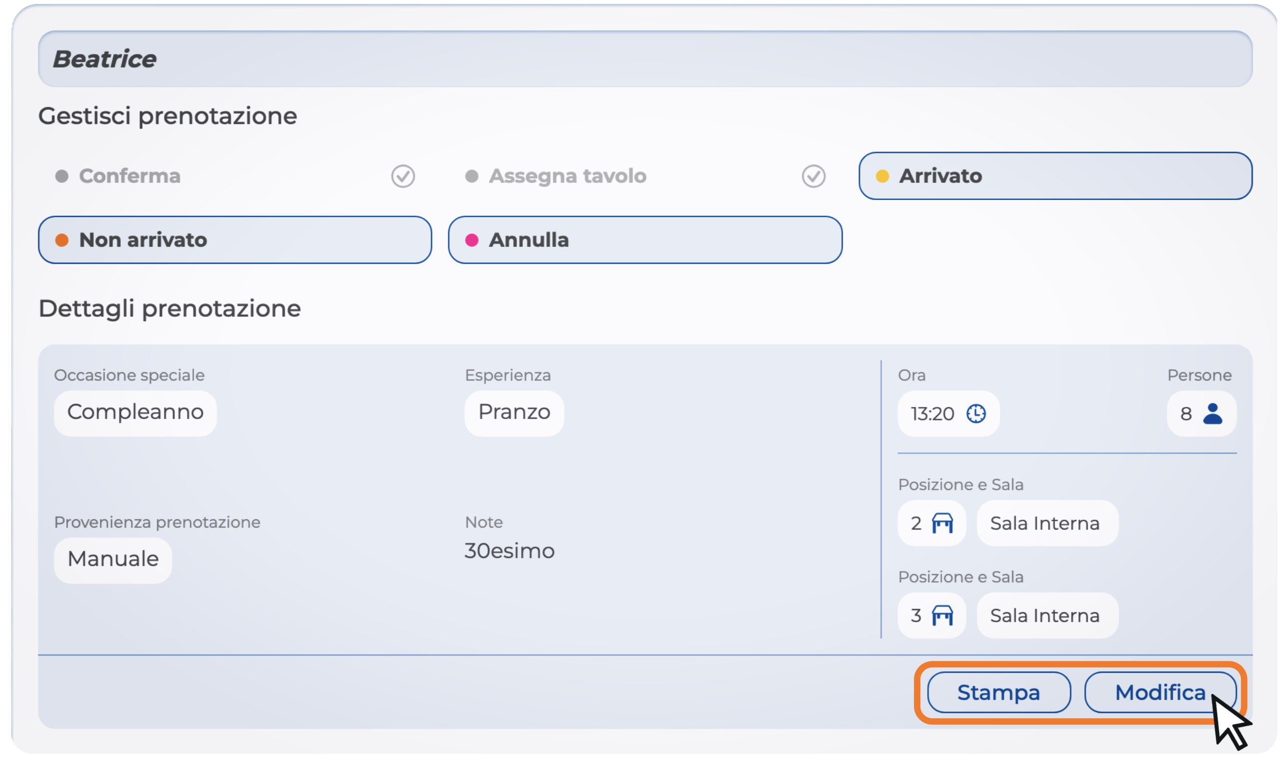 Da qui puoi modificare e gestire sia le prenotazioni inserite manualmente sia quelle arrivate dagli ordini online.