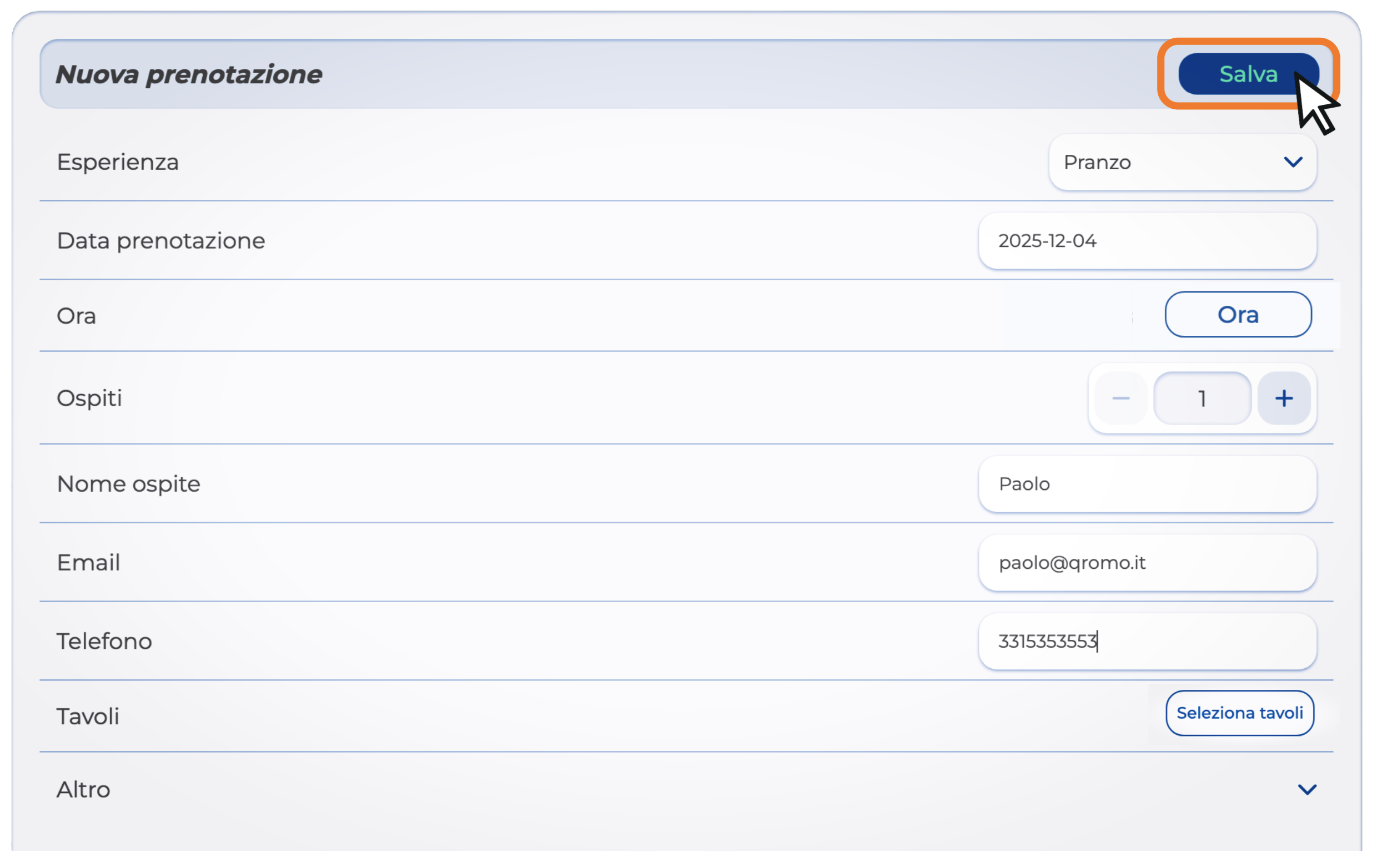 4. Compila i dati della prenotazione e clicca su Salva.