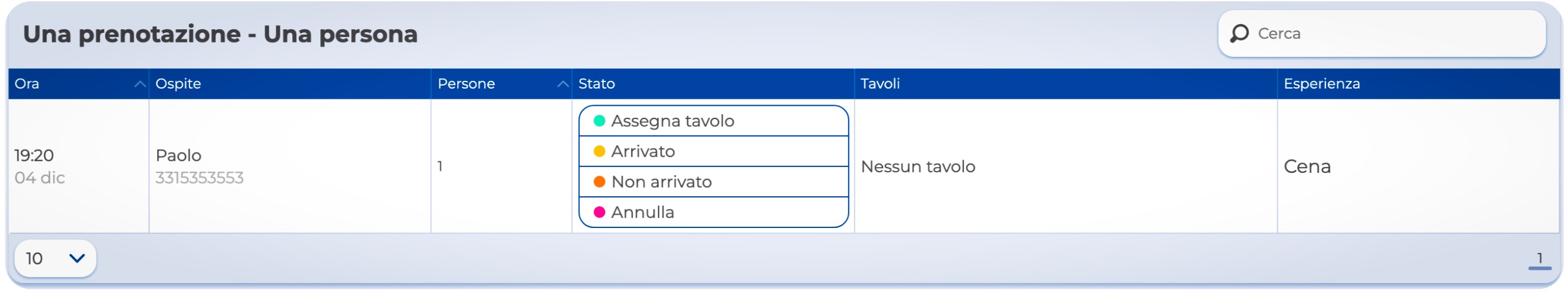 5. La prenotazione apparirà subito nella tabella dedicata. Se non hai selezionato il tavolo, il primo bottone te lo suggerisce; gli altri ti aiuteranno dell'operatività.